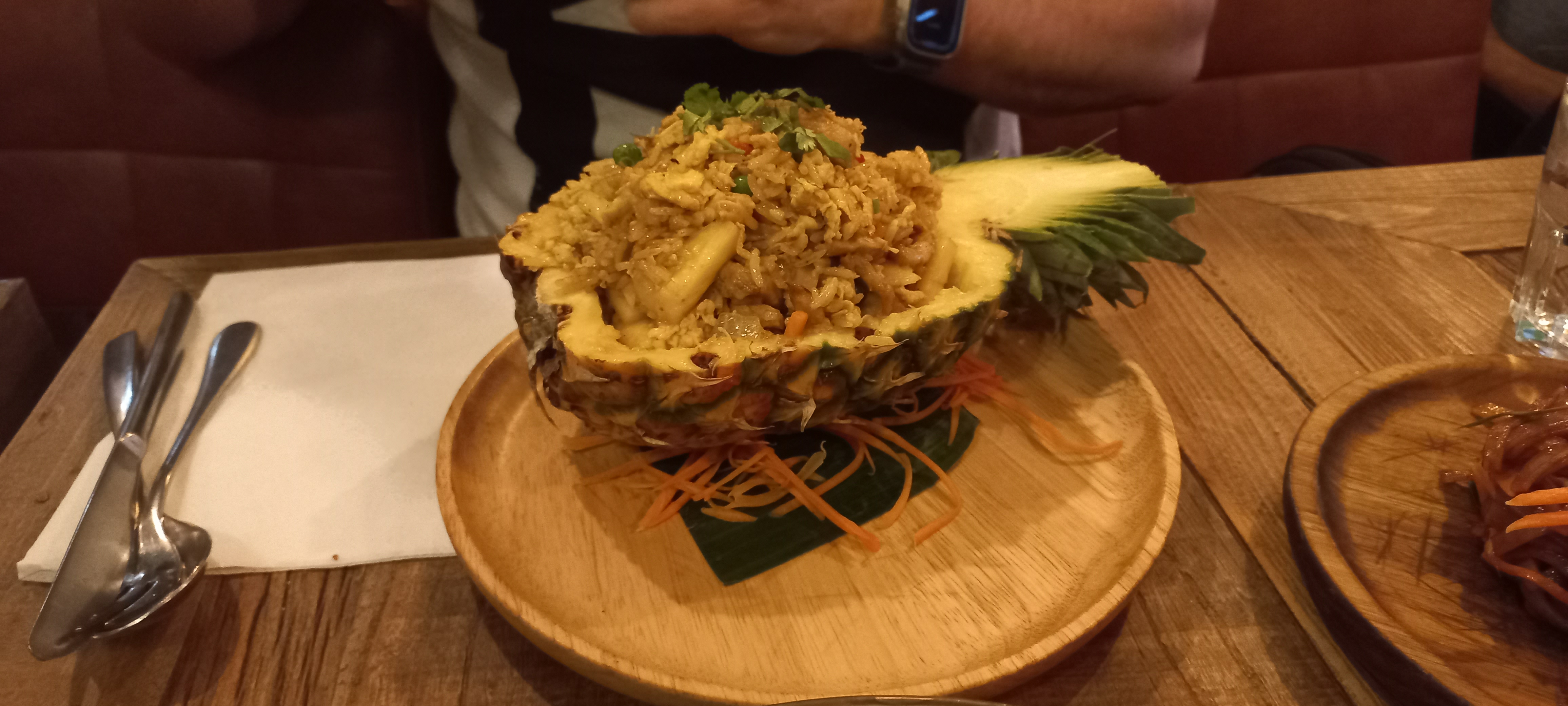 Posté le 05/07/2023 à 16:36"Original le décor, la salle est trop bruyante surtout quand c'est complet, la présentation des plats est intéressante, par exemple le demi 🍍 mais peu de morceaux dans le plat, dommage Bonne continuation à l'équipe acceuillante"