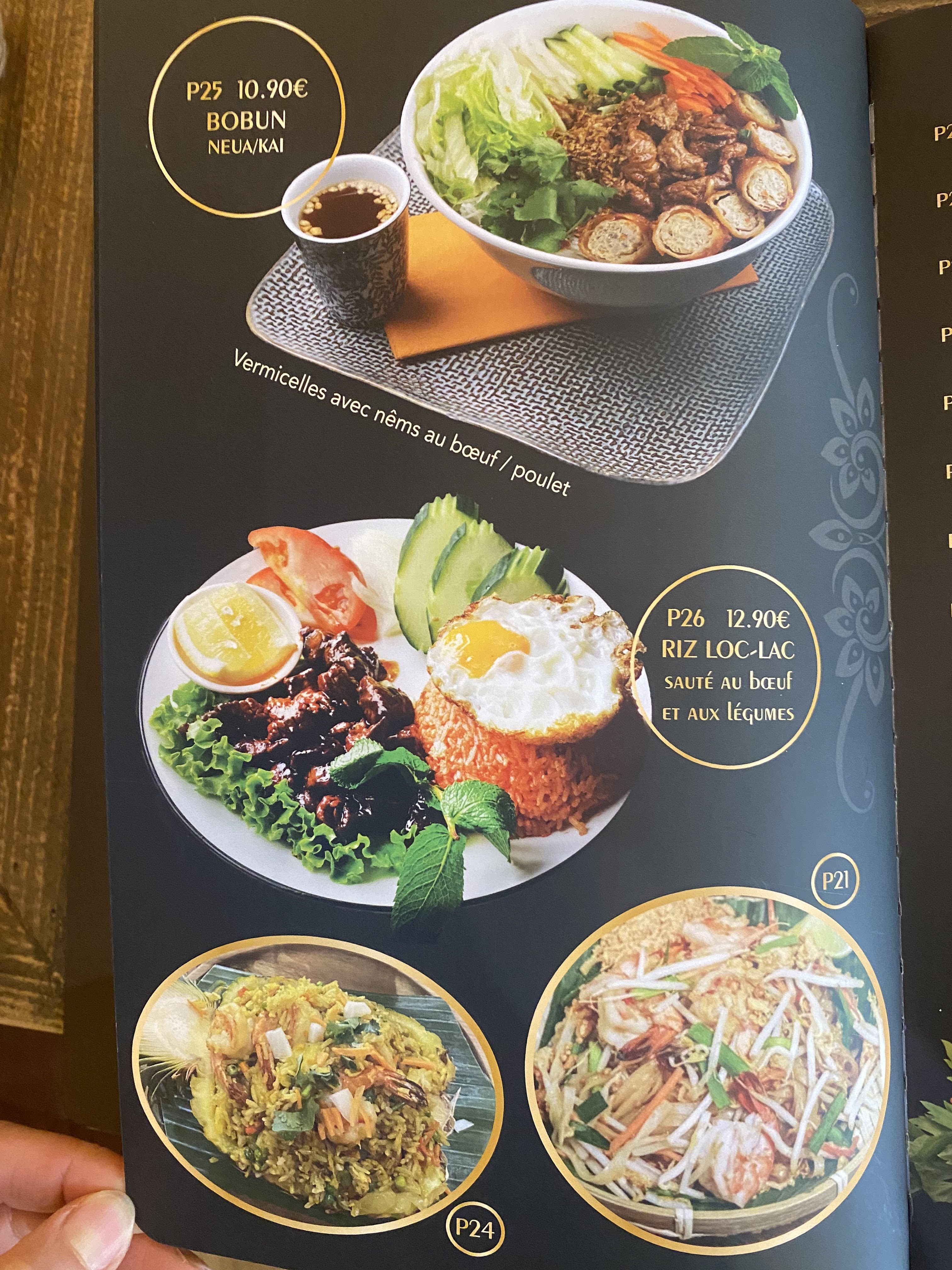 Posté le 18/04/2024 à 21:35"Excellent pad thai (P21) et crevettes coco (P29). Dîner le jeudi, beaucoup de monde, pensez à réserver"
