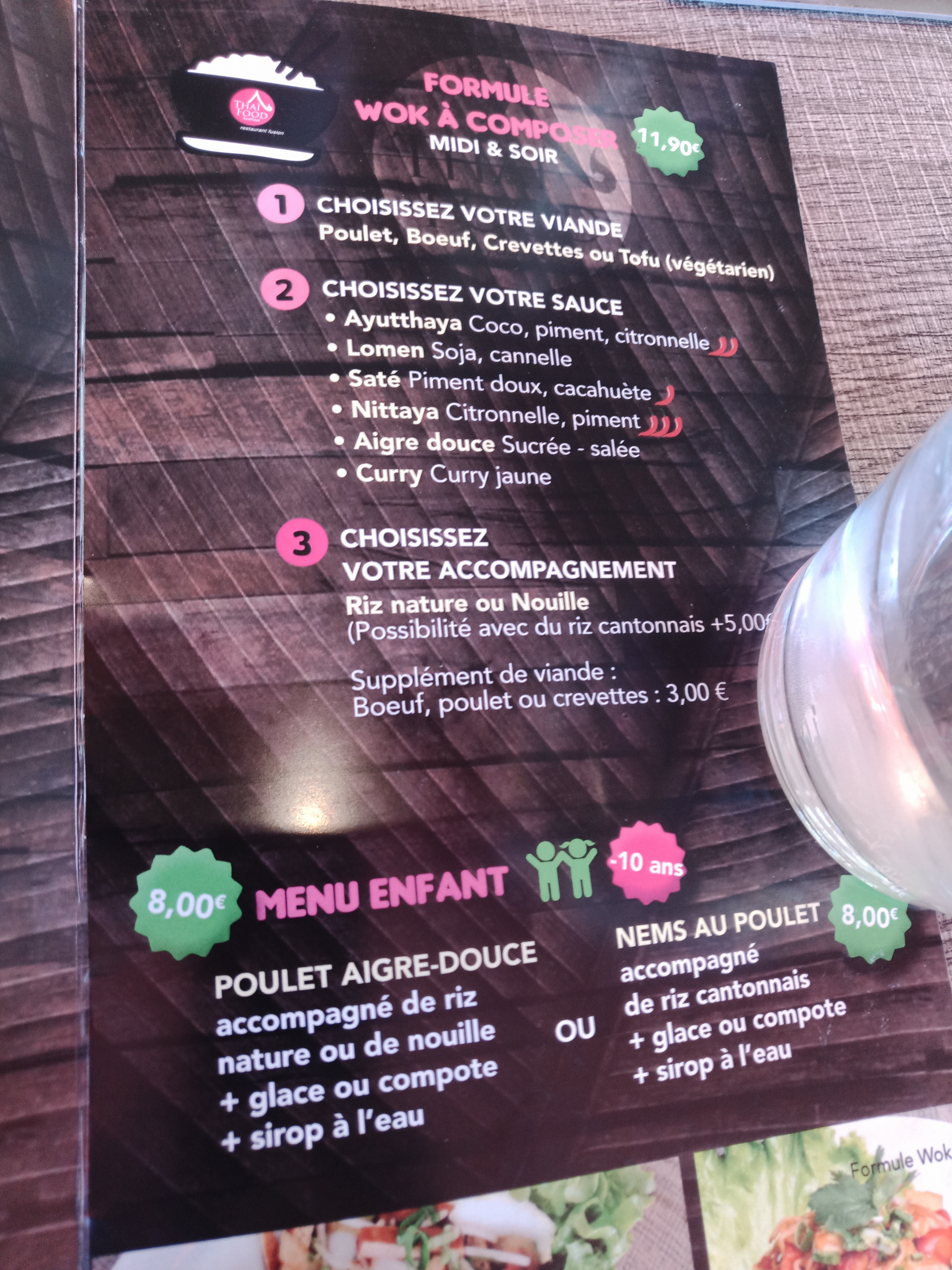 Posté le 19/07/2020 à 12:39"Quelle belle découverte ce resto thaï ! de la grande qualité et beaucoup de goût, et la sympathie en prime !! Le wok à emporter à 8,50 € avec choix viande / poisson, sauce et accompagnement est succulent et très généreux, et le pad thaï à emporter, divin ! C'est sûr nous ne tarderons à y retourner, que ce soit pour de l'emporter ou à prendre sur place dans la belle salle de restaurant décorée très tendance ! Un grand bravo à toute l'équipe !"