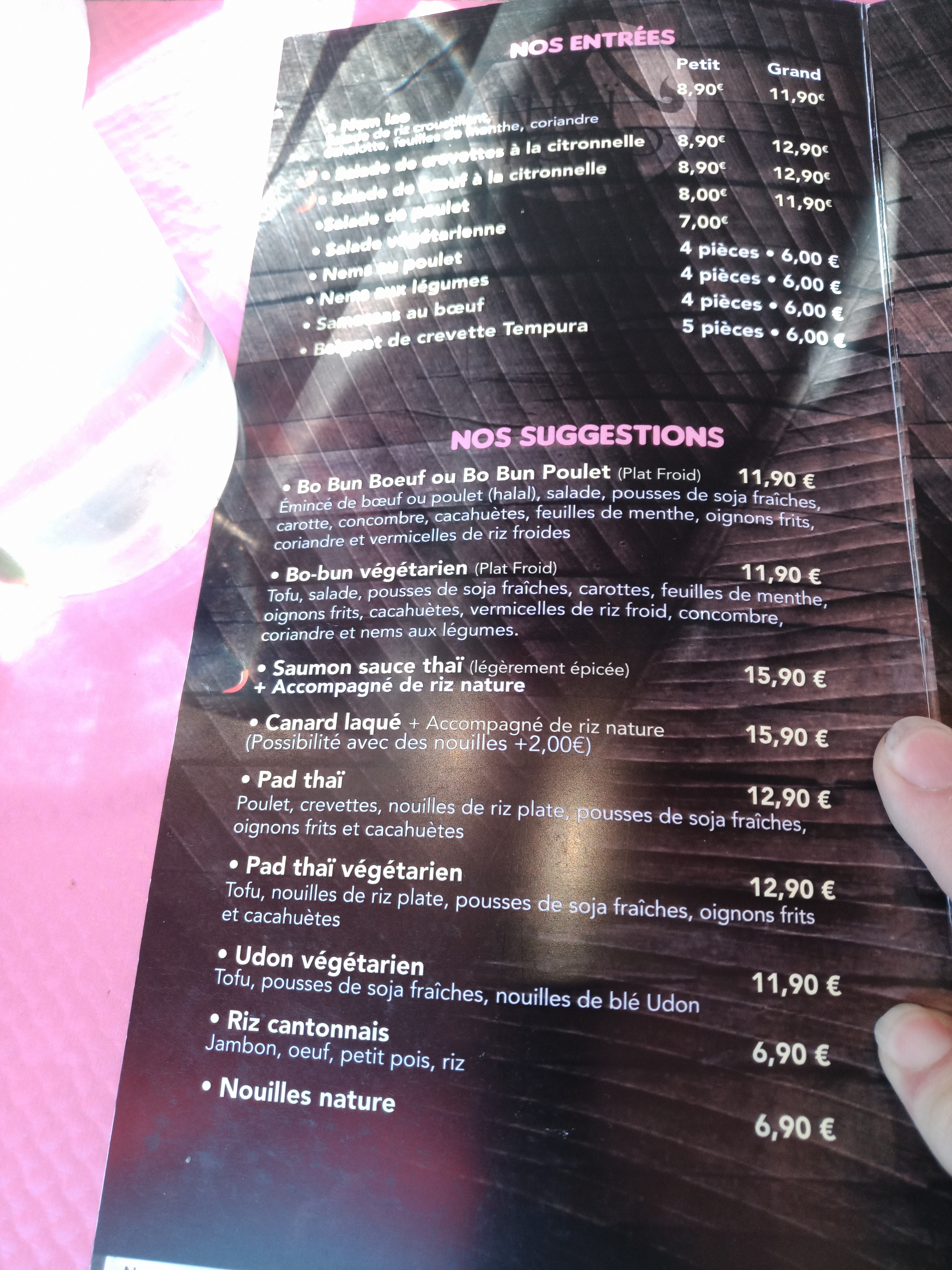 Posté le 16/07/2023 à 08:34"cuisine asiatique savoureuse, produits frais, j'ai bien aimé les nems, les bo buns, les pad thai !!"