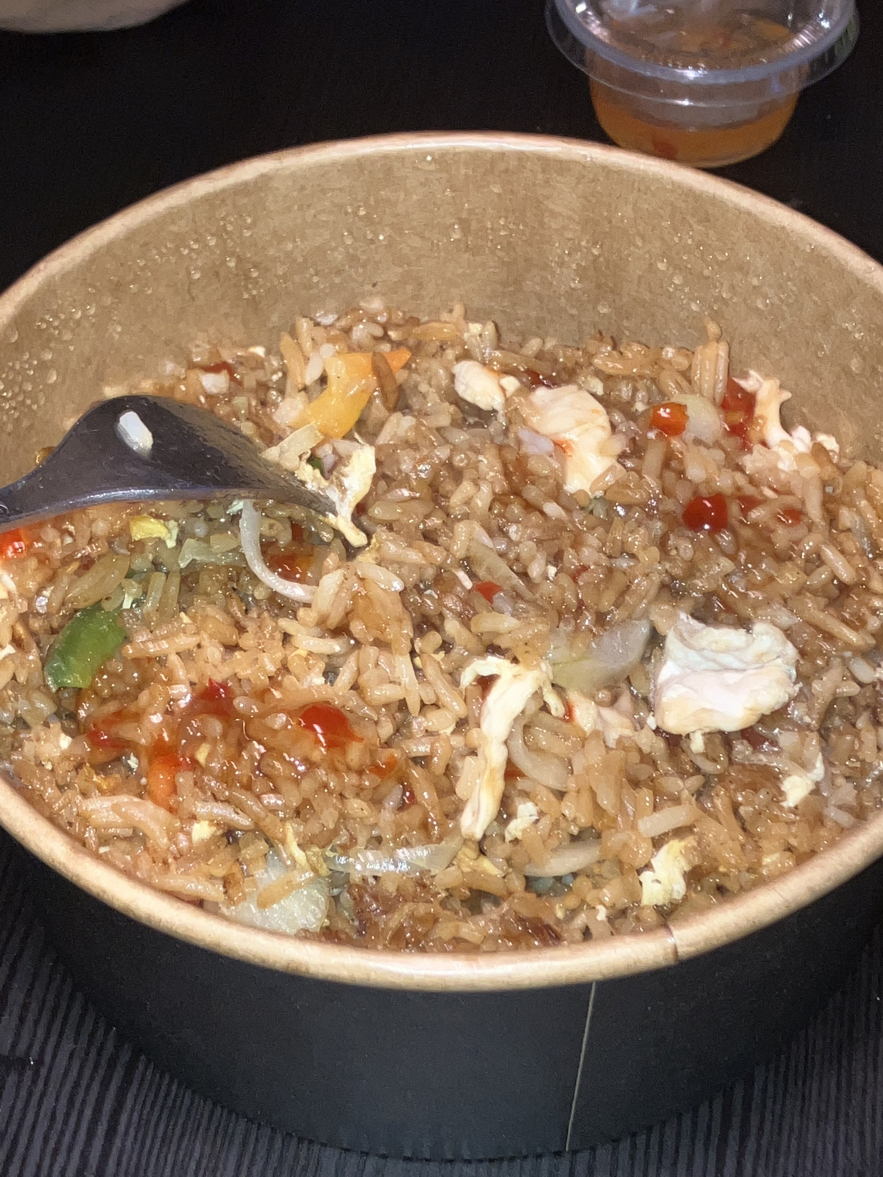 Je suis tombée malade en mangeant ce plat. Vomissement diarrhée. Intoxication alimentaire Mon mari a tout recraché. Mettre aliments périmés avec des oeufs est très grave. Je ne recommande pas du tout et jespere que vous aurez un contrôle alimentaire car c'est honteux de rendre les gens malades car nous n'utilisez pas d'aliments frais. Commande passée un dimanche, je pense que vous avez utilisé des restes!!!