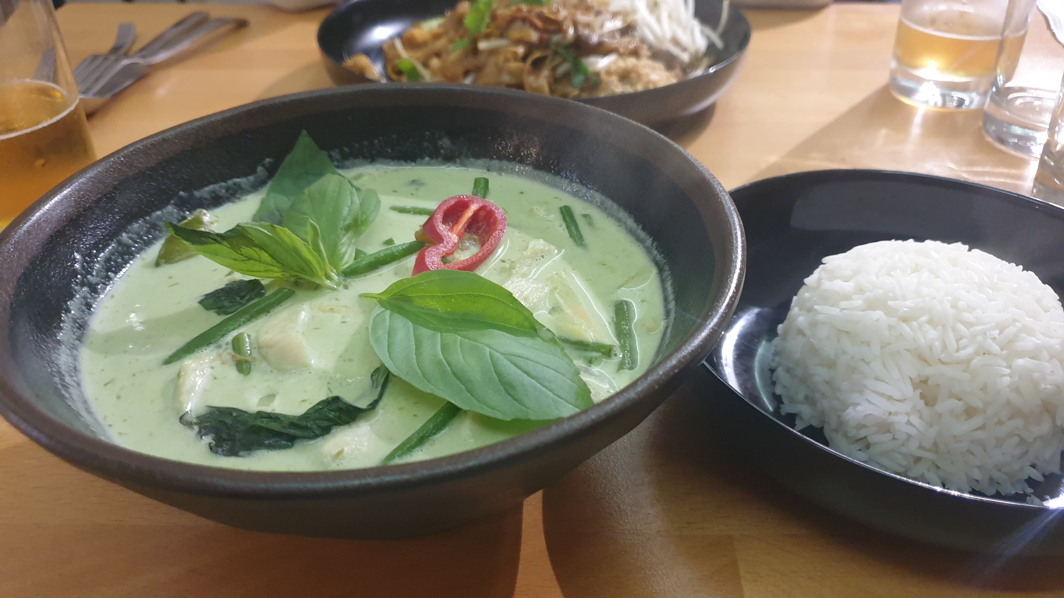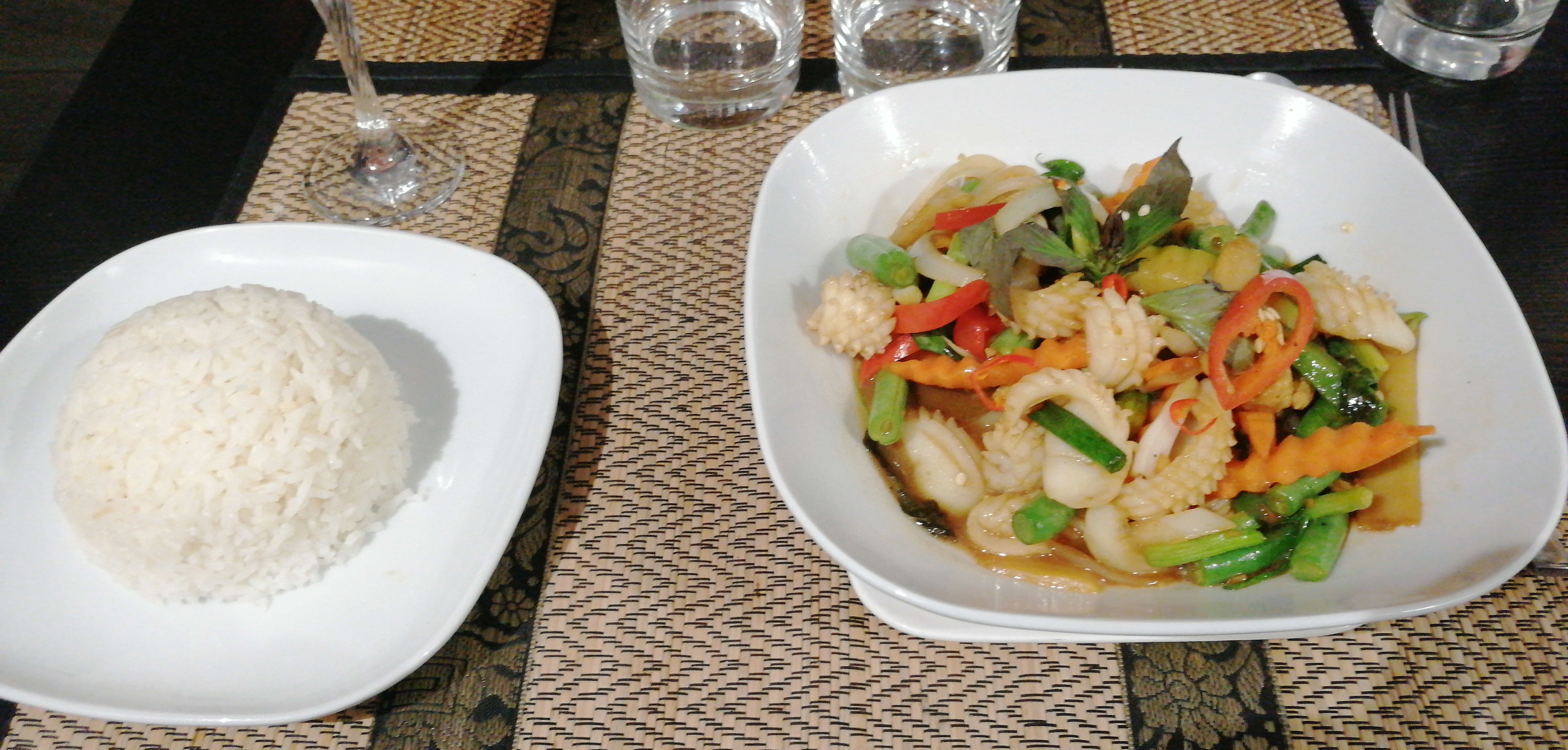 Le personnel est accueillant et sympathique. Niveau plat, nous avons été très déçu, par rapport au prix. Concernant le pad thaï, les pates était correcte mais il n'y avait presque pas de viande... Pour le poulet au curry vert, il y avait très peu de viande et j'ai des gros doute sur l'authenticité du curry vert. Pour en avoir déjà manger dans d'autre restaurant thaï, l'aspect et la couleur était vraiment étrange. A mon avis, c'est un mélange de colorant et de piment rouge. En résumé : mauvais rapport qualité/prix.