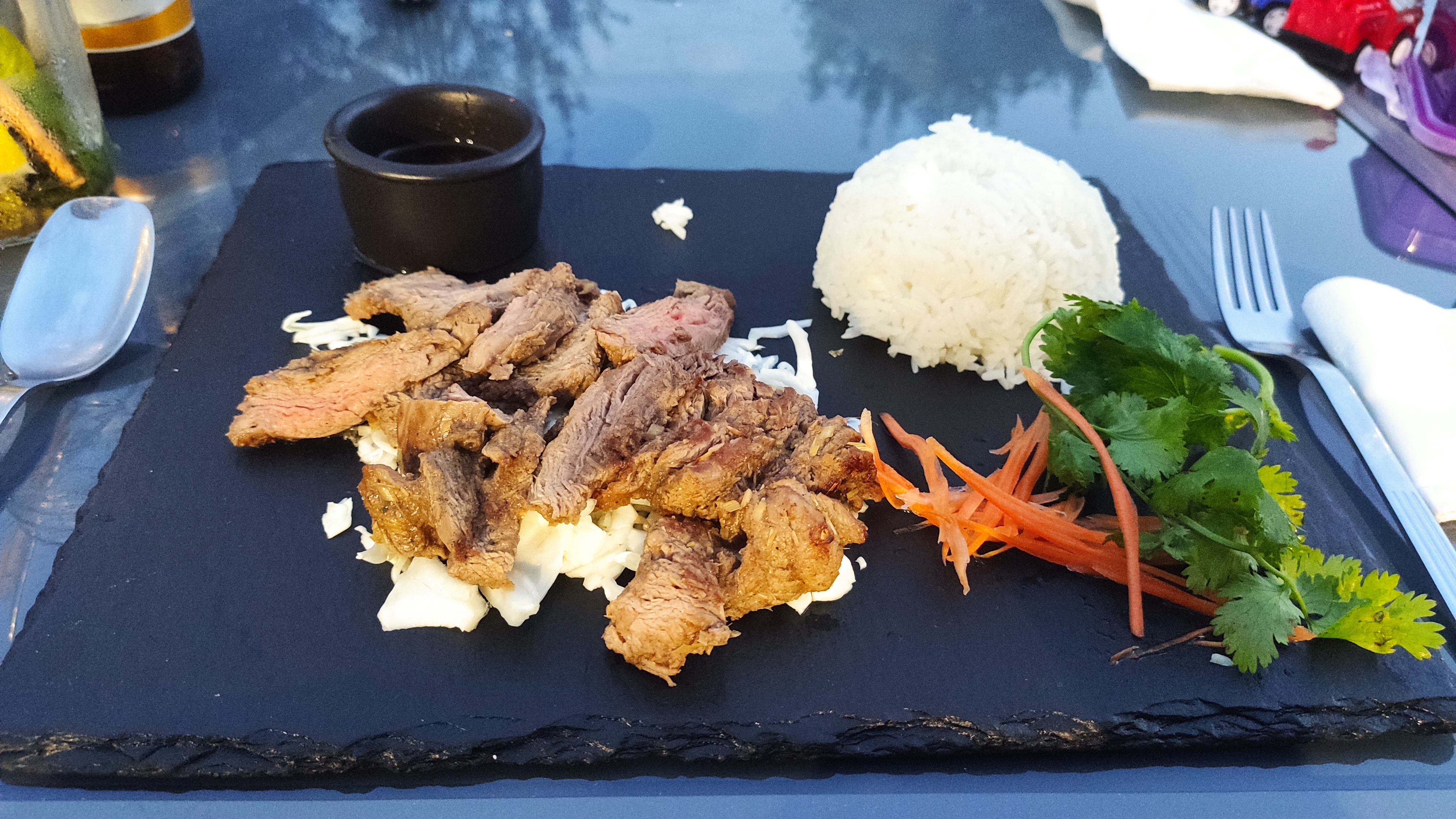 Un peu déçu à la vue des avis : Loc Lac très moyen (riz sans goût et viande pateuse pas assez cuite pas terrible vraiment dommage) et pour un prix trop élevé surtout.. Par contre dessert spécial (nem choco banane) du restaurant excellent! Mais a un prix un peu trop cher aussi... Donc avis mitigé Mais du potentiel et un acceuil agréable pourrait bien mieux faire... cordialement