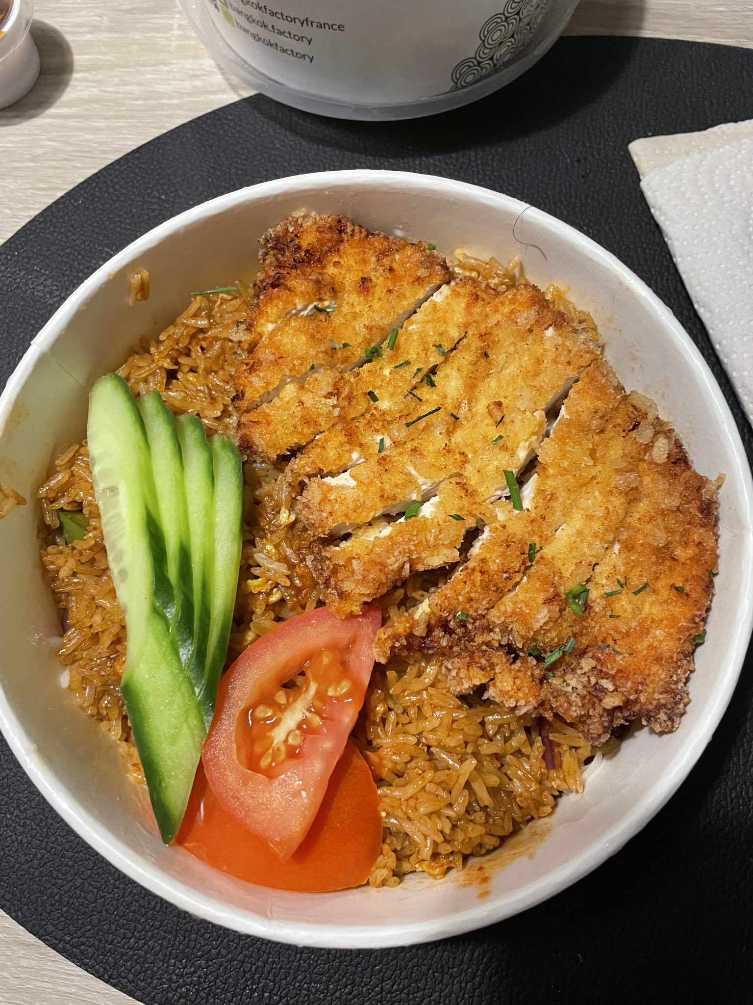 Plat délicieux (j'ai pris le Bangkok), poulet excellent , tendre et croustillant, riz à tomber !! Prochaine fois je prends encore plus piquant 🔥🔥 (Livraison Uber Eat)
