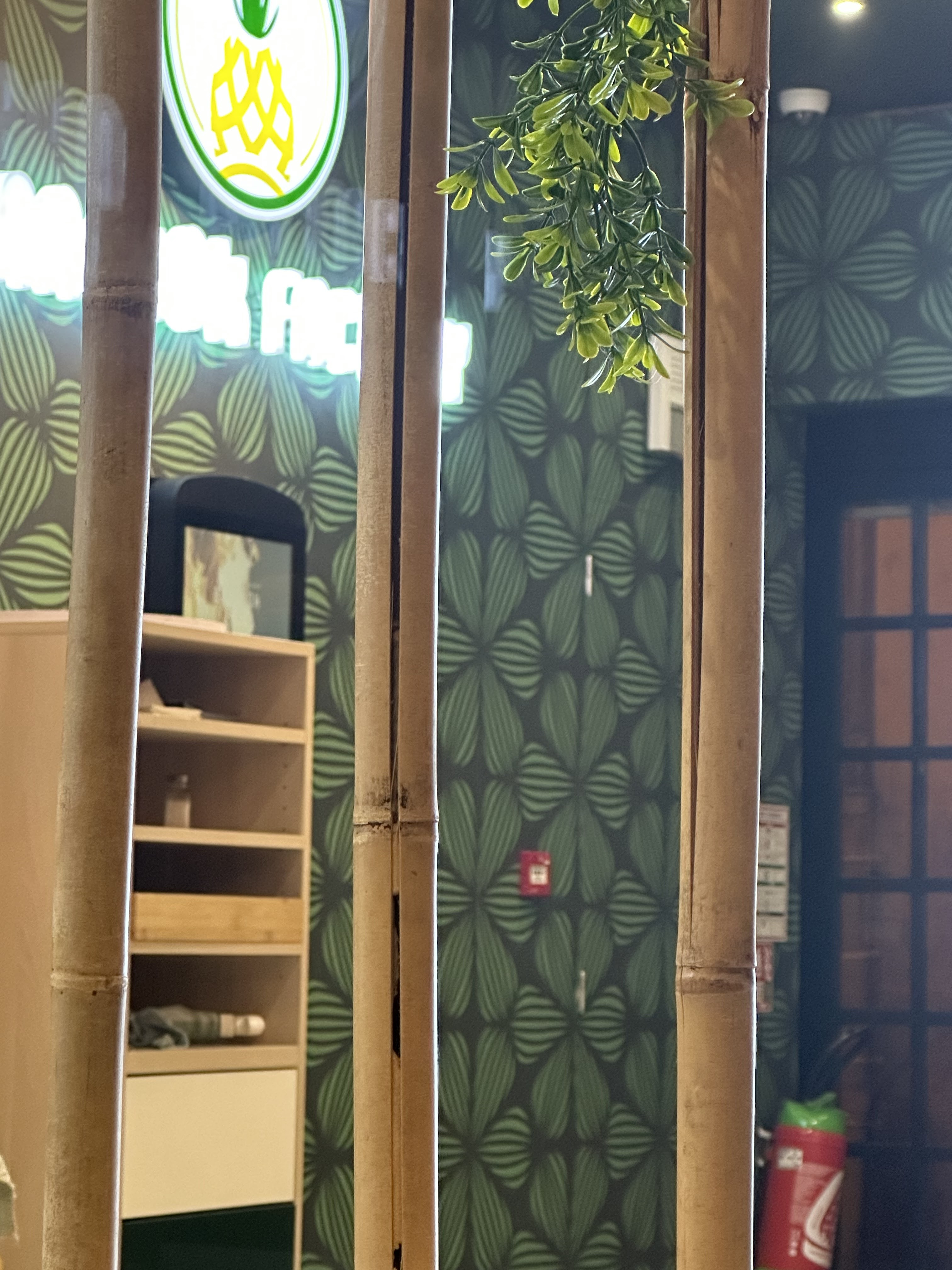 Posté le 16/12/2022 à 18:49"Attente longue (50mn) debout essayant de trouver un petit coin pour pas être sur le passage. C’est assez petit et pas adapté aux poussettes (marche à l’entrée) Il y’a eu un oubli de boisson, heureusement que je m’en étais rendu compte en regardant le sac par contre une erreur sur le dessert, on m’a mit un tapioca banane au lieu de mangue, et la, je m’en suis aperçu qu’arriver chez moi. Les nems étaient bons, malgré qu’ils se soient « ouvert » par la friture (esthétique) Sinon les plats étaient bon et copieux et la décoration du restau jolie. Je re testerai un peu plus tard pour voir s’ils s’amélioreront. Bon concept et bon courage !"