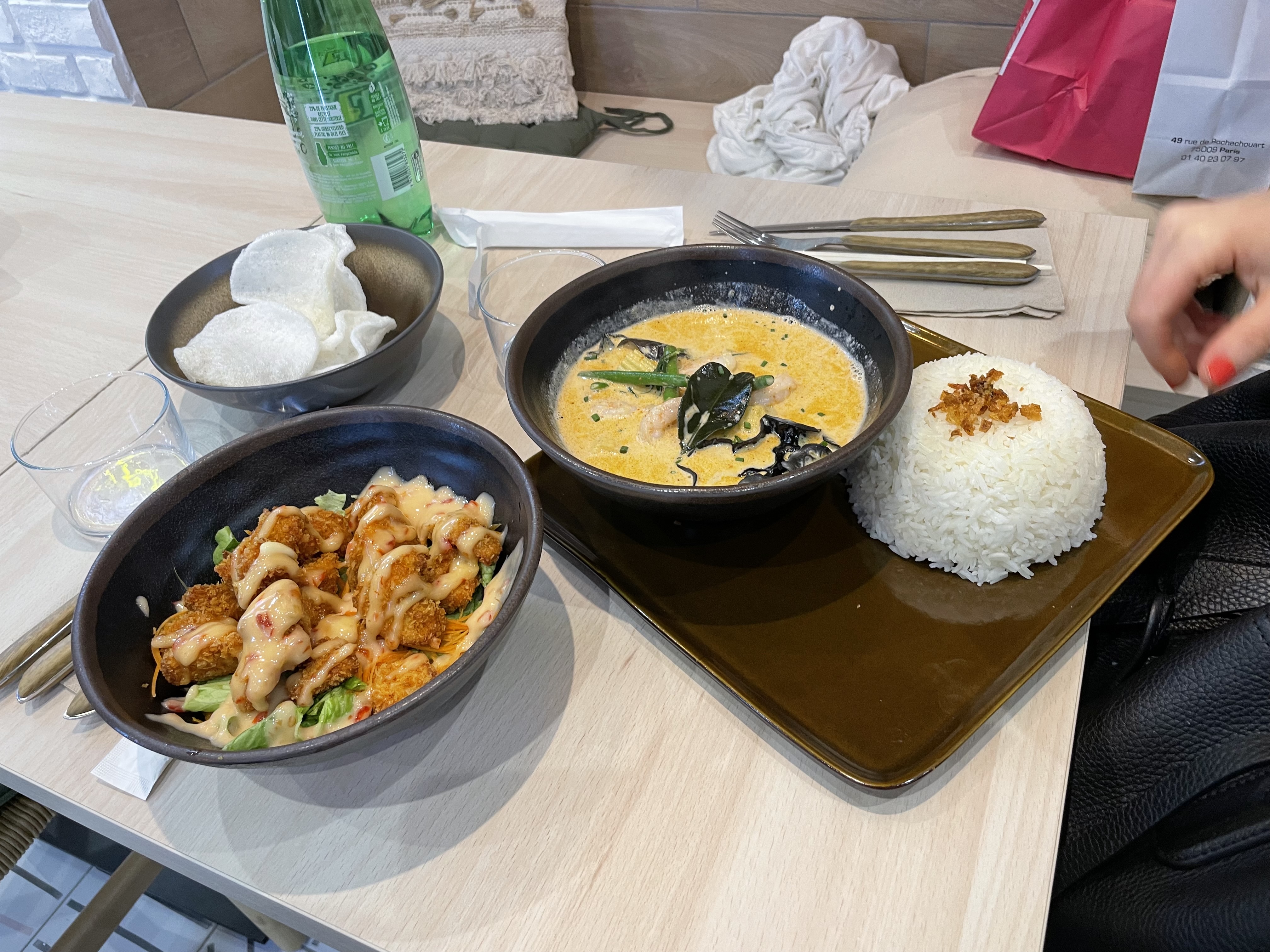 Très bonne expérience ! On a pris le tigre qui pleure, le bangkok (poulet frit) et les crevettes dynamite. Tout était très ! La viande est tendre, goûteuse, les sauces sont bonnes. Les quantités généreuses et les prix raisonnables. Enfin un bon thaï sur Tours !
