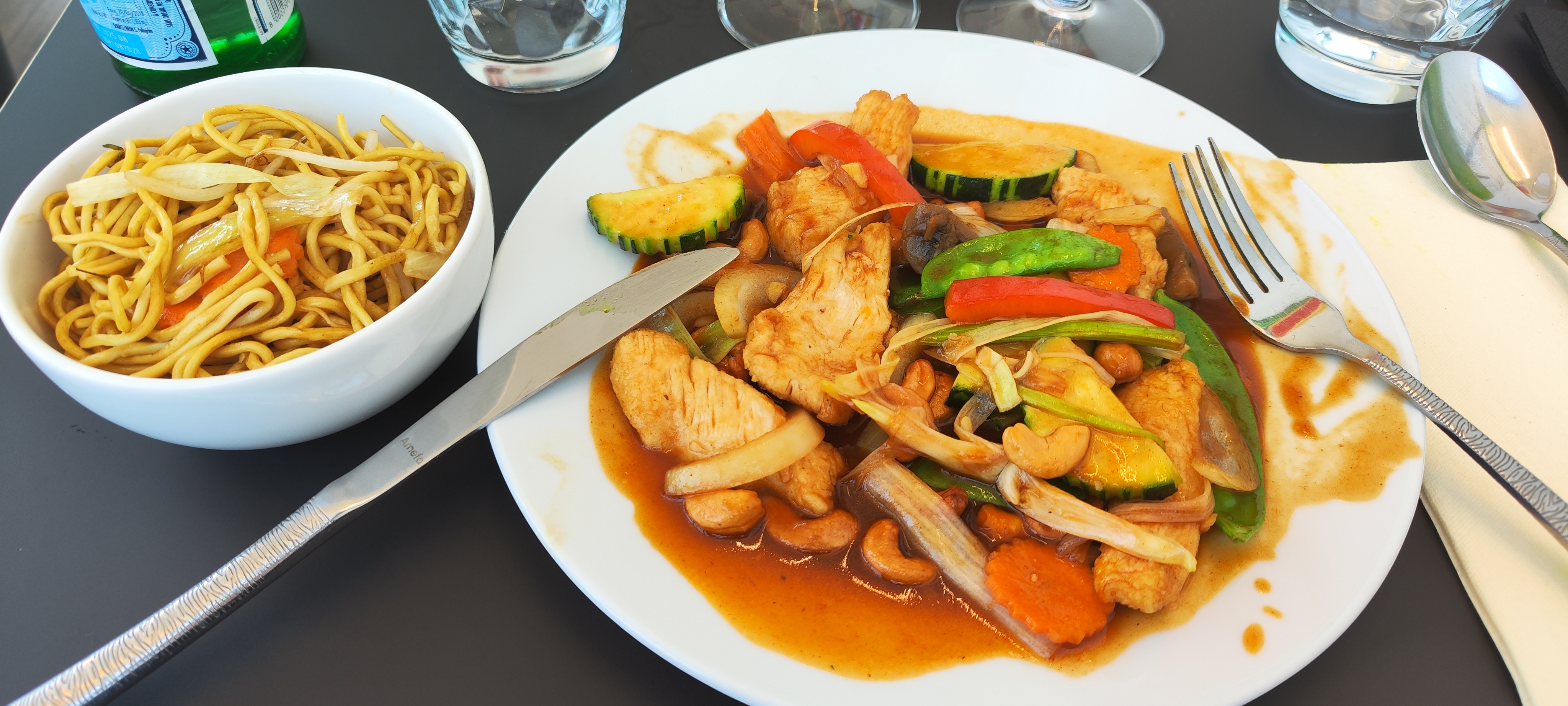 Cuisine super ! Rapport qualité / prix satisfaisant Un bémol ; pas de pain ou équivalent et impossible de mixer les garnitures des plats. Nous avions demandé moitié nouilles moitié légumes sautées , Impossible ?! Service un peu distant
