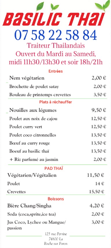 Voici toutes les informations sur le Restaurant thaï Basilic thaï qui ce trouve au 125 Rue Perrine, 74800 La Roche-sur-Foron (74). Sur cette fiche vous trouverez les photos, l'adresse, les horaires d'ouverture, le numero de téléphone et les avis clients.Vous pouvez églement rédiger un avis si vous le souhaitez en bas de page.