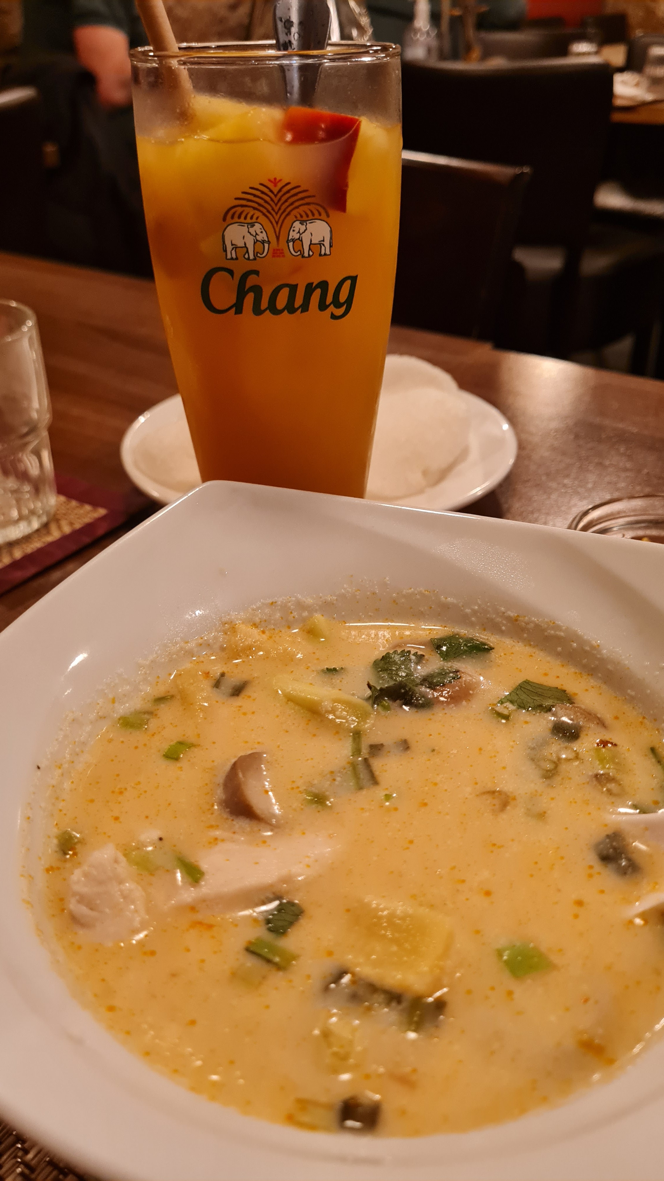 Très moyen pour un thaï de quartier. Soupe coco avec le quart des ingrédients qui ne se mangent pas. Morceau de poulpe Industriel crevette pareil... si non bon accueil et service.