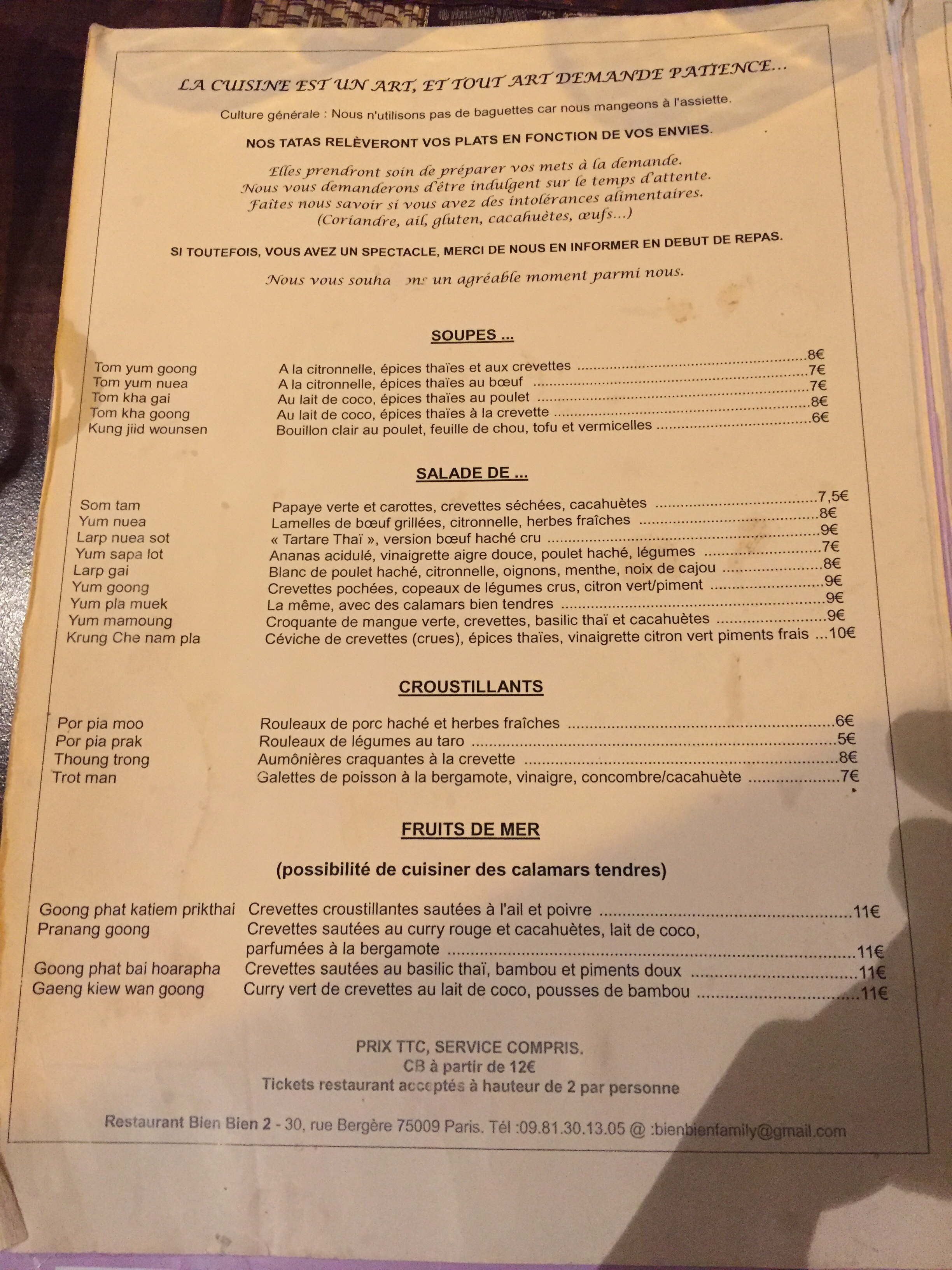 Découvrez toutes les informations concernant Restaurant thaï BIEN BIEN qui se situe au 30 Bis Rue Bergère, 75009 Paris (75). Cette fiche inclut les photos, les horaires d'ouverture, l'adresse, le numéro de téléphone et les avis des clients.