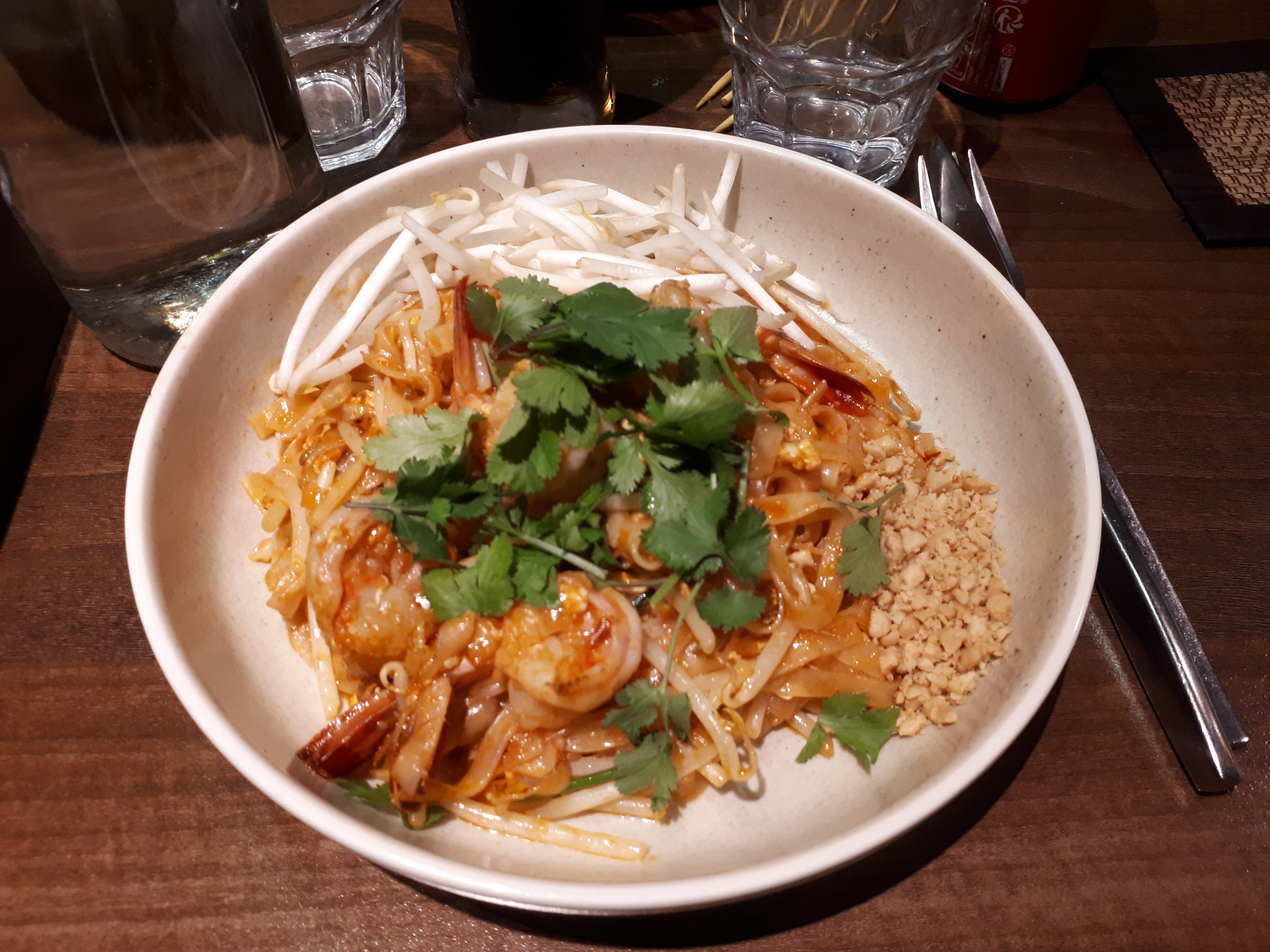 Pas fou fou… 14€ pour un maigre pad thaï avec 4 crevettes. On nous retire les assiettes vides alors que d’autres gens mangent encore à notre table, cela ne se fait pas.