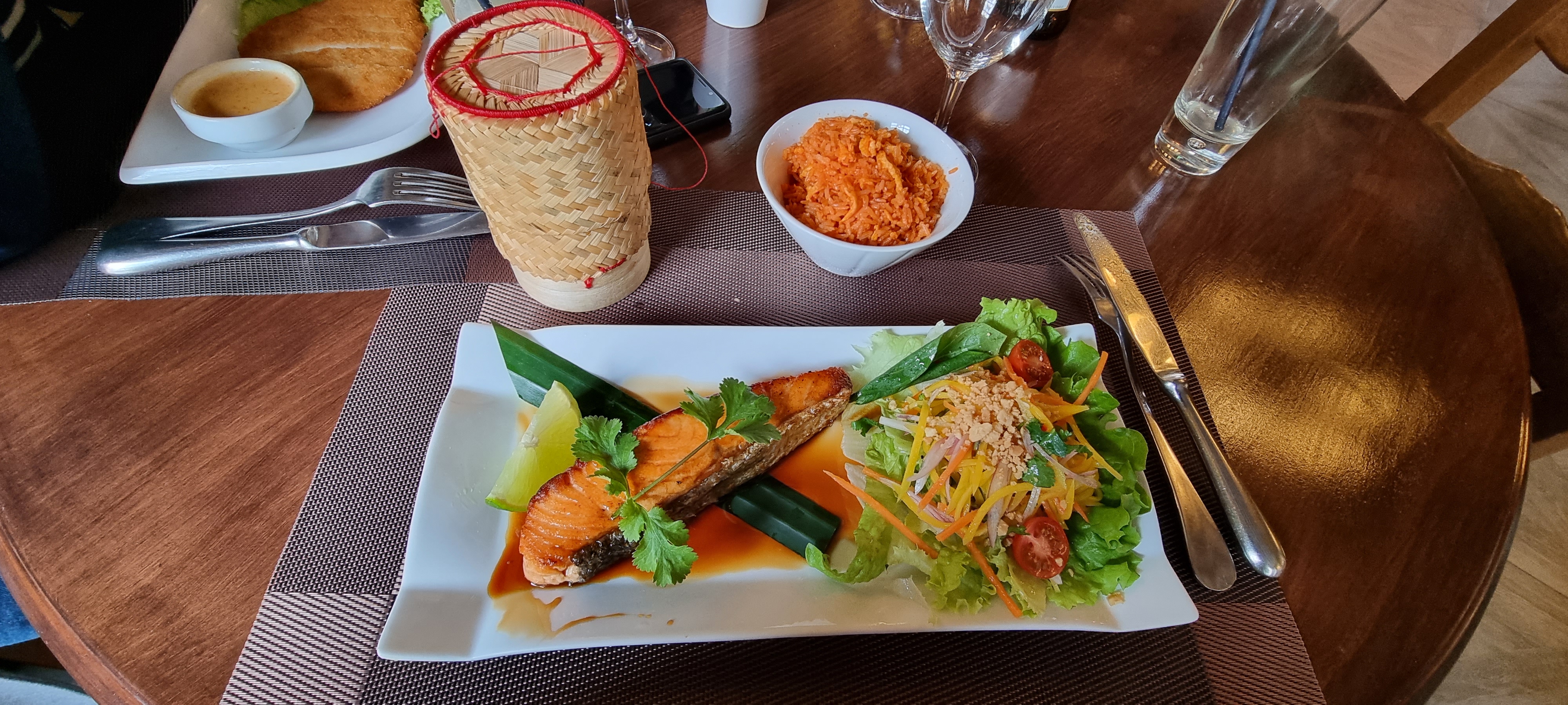 Posté le 11/05/2024 à 14:40"Dans le coin, nous cherchions un restaurant et suite aux avis nous y sommes allés. Rien à redire, nous avons pris des bouchées aux légumes, poulet panadus, pah thai crevettes et loc lac j'ai été surprise par la qualité du bœuf et des crevettes qui n'est pas toujours top dans les restaurants asiatiques. J'ai un bon coup de fourchette et contrairement à ce que j'ai lu la quantité du pad Thai est suffisante. Je précise aussi que je suis difficile sur la qualité. Personnel parfait, cadre agréable et c'est très propre. Nous y retournerons"