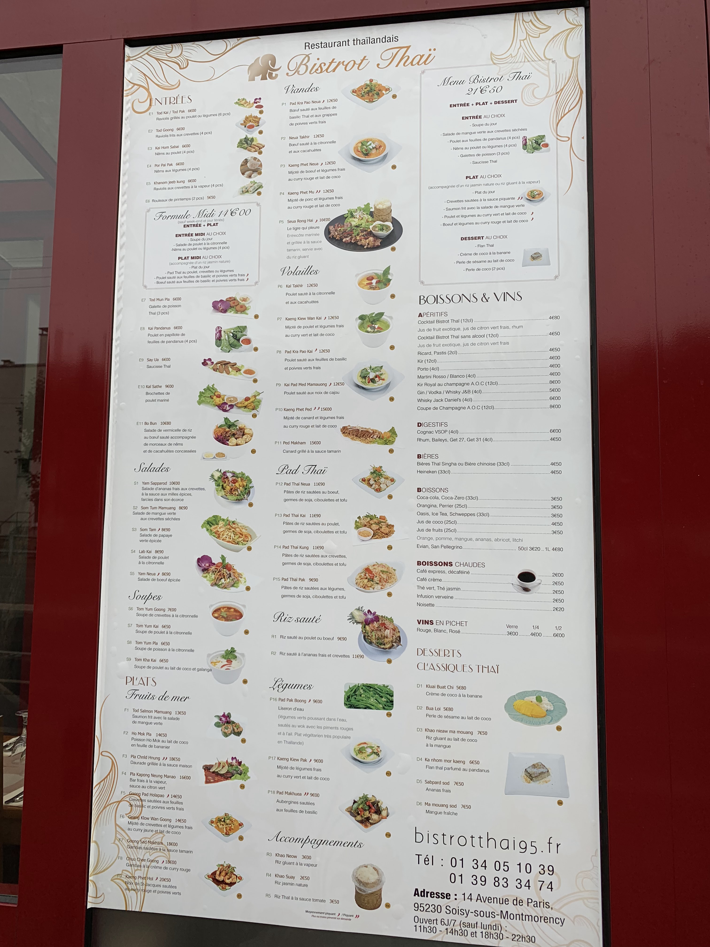 Voici toutes les informations sur le Restaurant thaï Bistrot Thaï qui ce trouve au 14 Av. de Paris, 95230 Soisy-sous-Montmorency (95). Sur cette fiche vous trouverez les photos, l'adresse, les horaires d'ouverture, le numero de téléphone et les avis clients.Vous pouvez églement rédiger un avis si vous le souhaitez en bas de page.