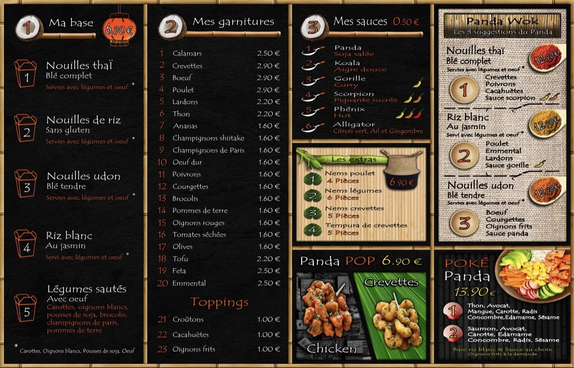 Posté le 02/09/2023 à 20:13"Ici pas de panda au menu mais de quoi satisfaire toutes les faims. Très copieux, juste petit bémol sur la sauce curry qui est épicée mais pas parfumée. Merci à l équipe"