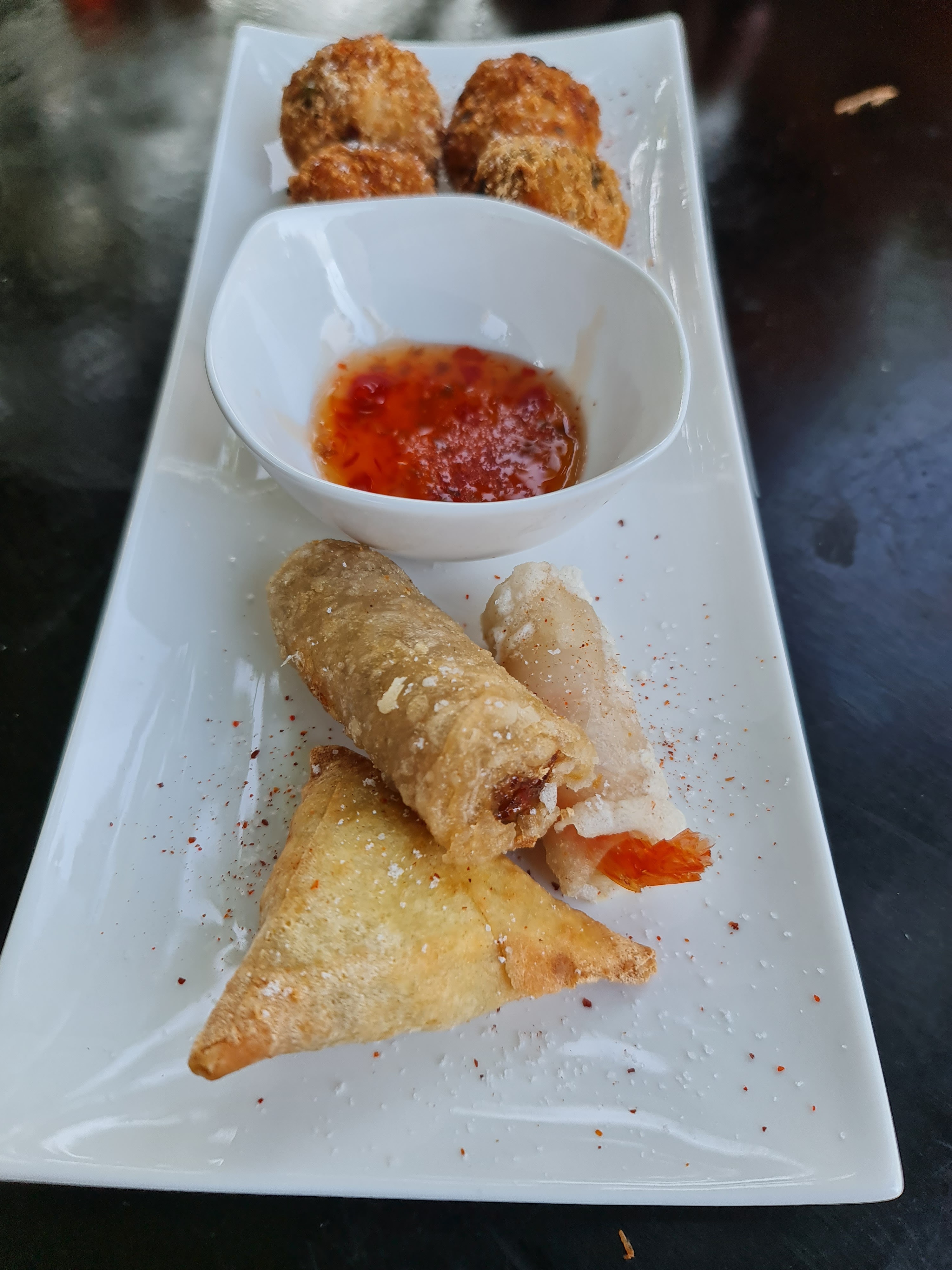 Excellent souvenir, choix possibles en poisson (calamar, crevettes) ou viandes, très bonne cuisine Thaï, planche à partager assez complète