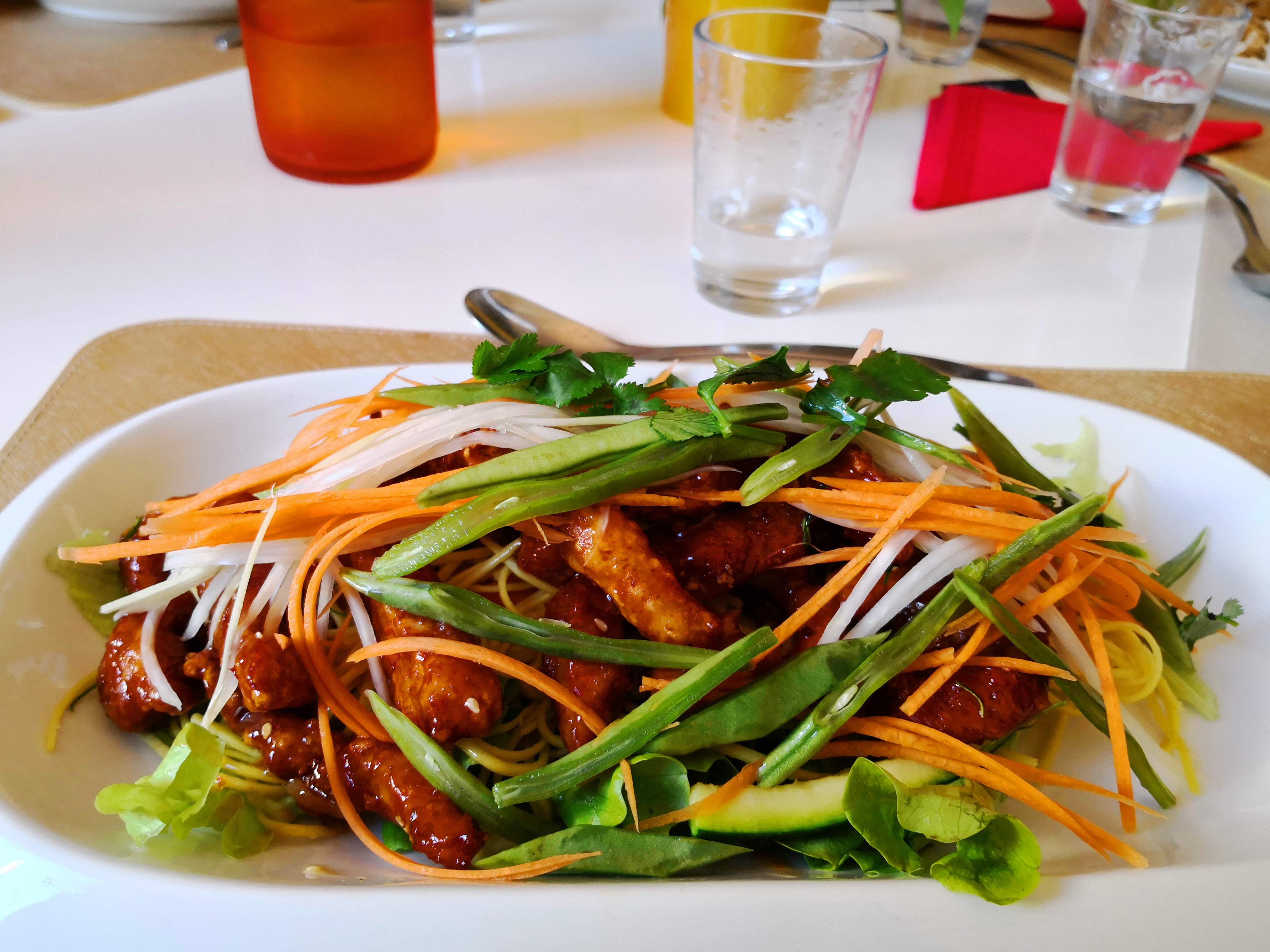 Repas du soir, très copieux.. Entrée super fraîche, Pad Thaï aux crevettes super. Accueil sympa, Restaurant propre, s'adapte aux végétariens. Je recommande ce ptit resto à Rochefort.