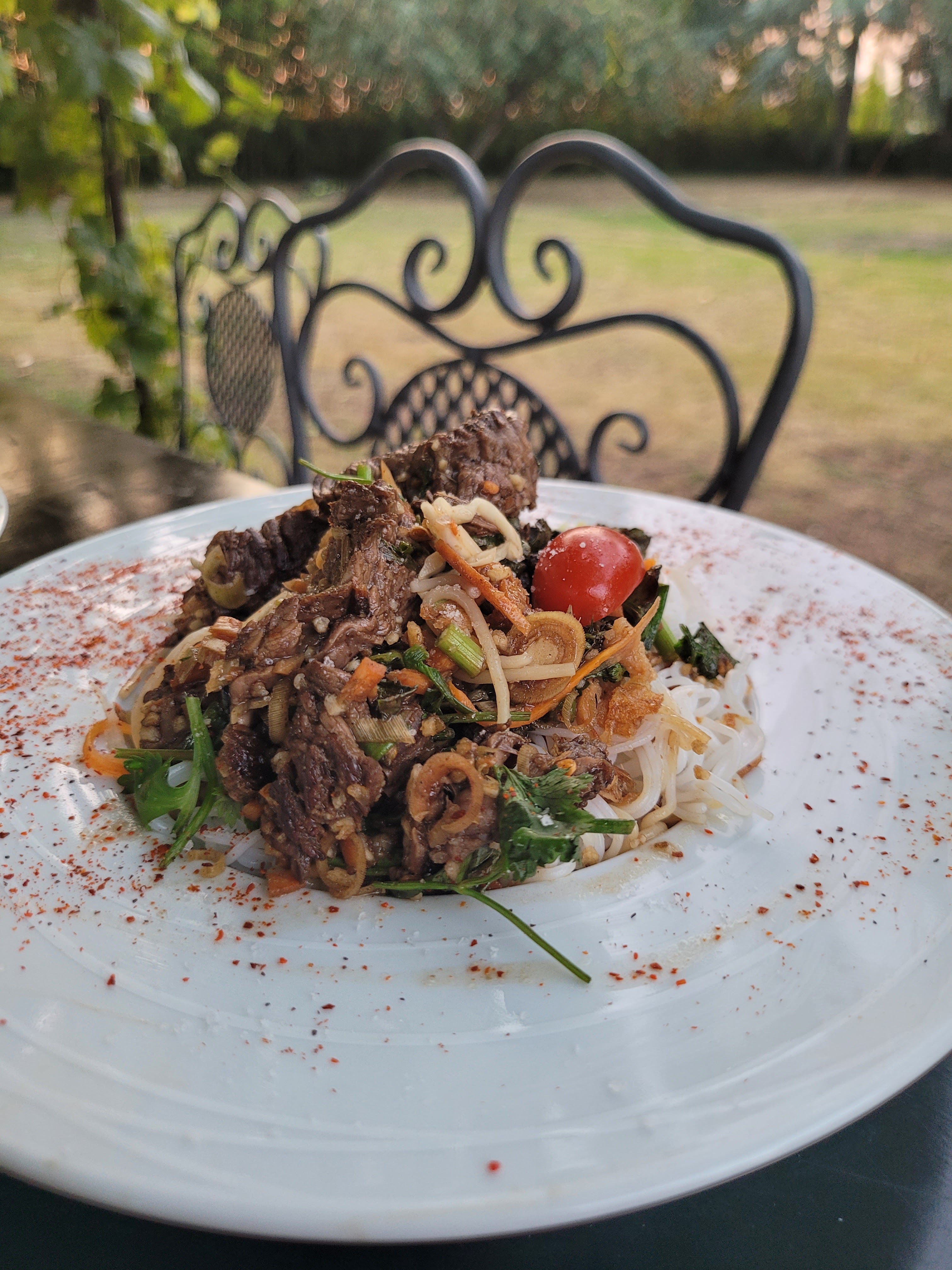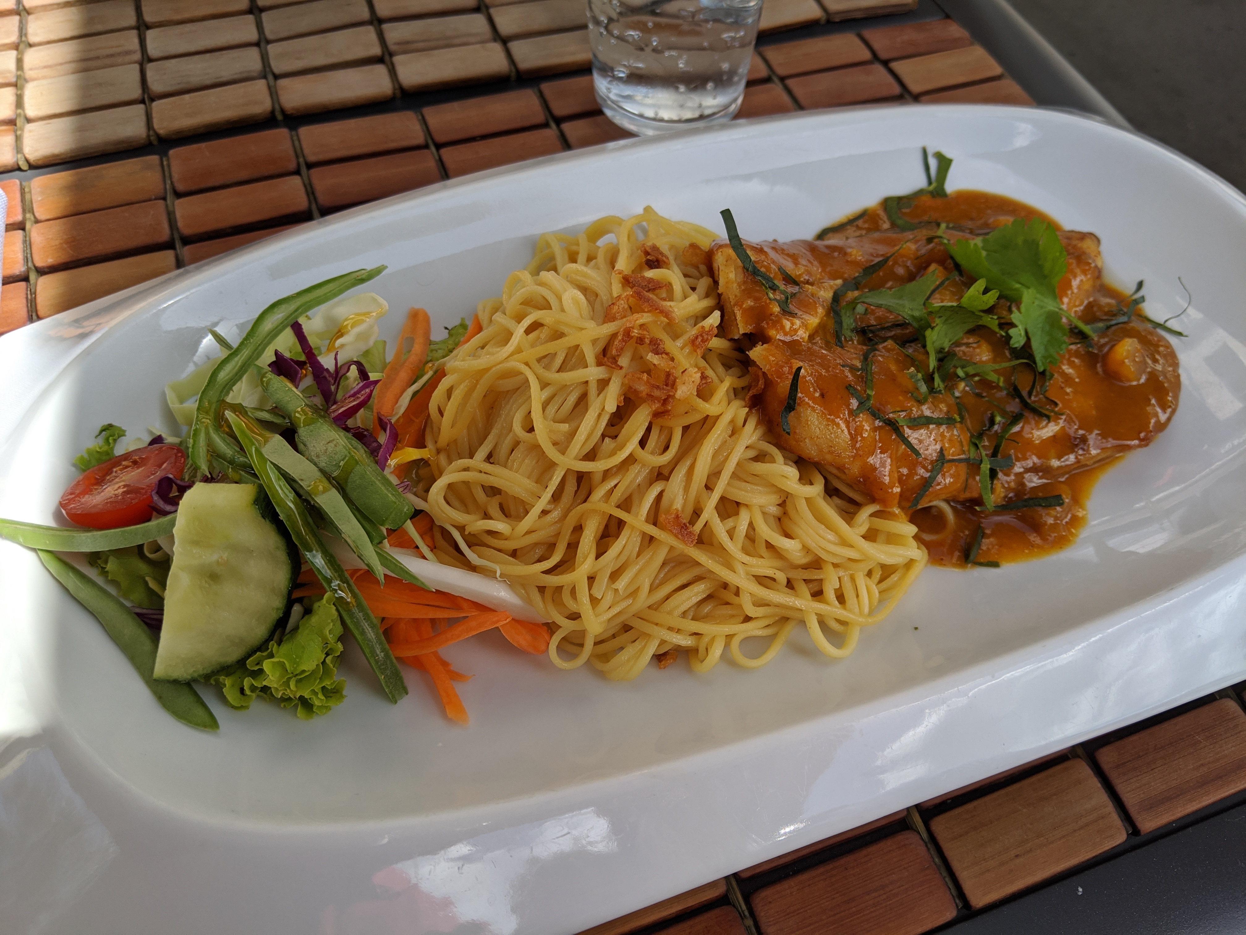 Nous avons déjeuné de délicieuses (et copieuses) pad thaï en terrasse. Le personnel était souriant et n’a pas été dérangé par nos enfants bruyants (et qui ont fait tomber pas mal d’aliments par terre) ! Je recommande ce restaurant thaïlandais pour voyager à travers leurs saveurs venues d’Asie pour un budget très raisonnable.