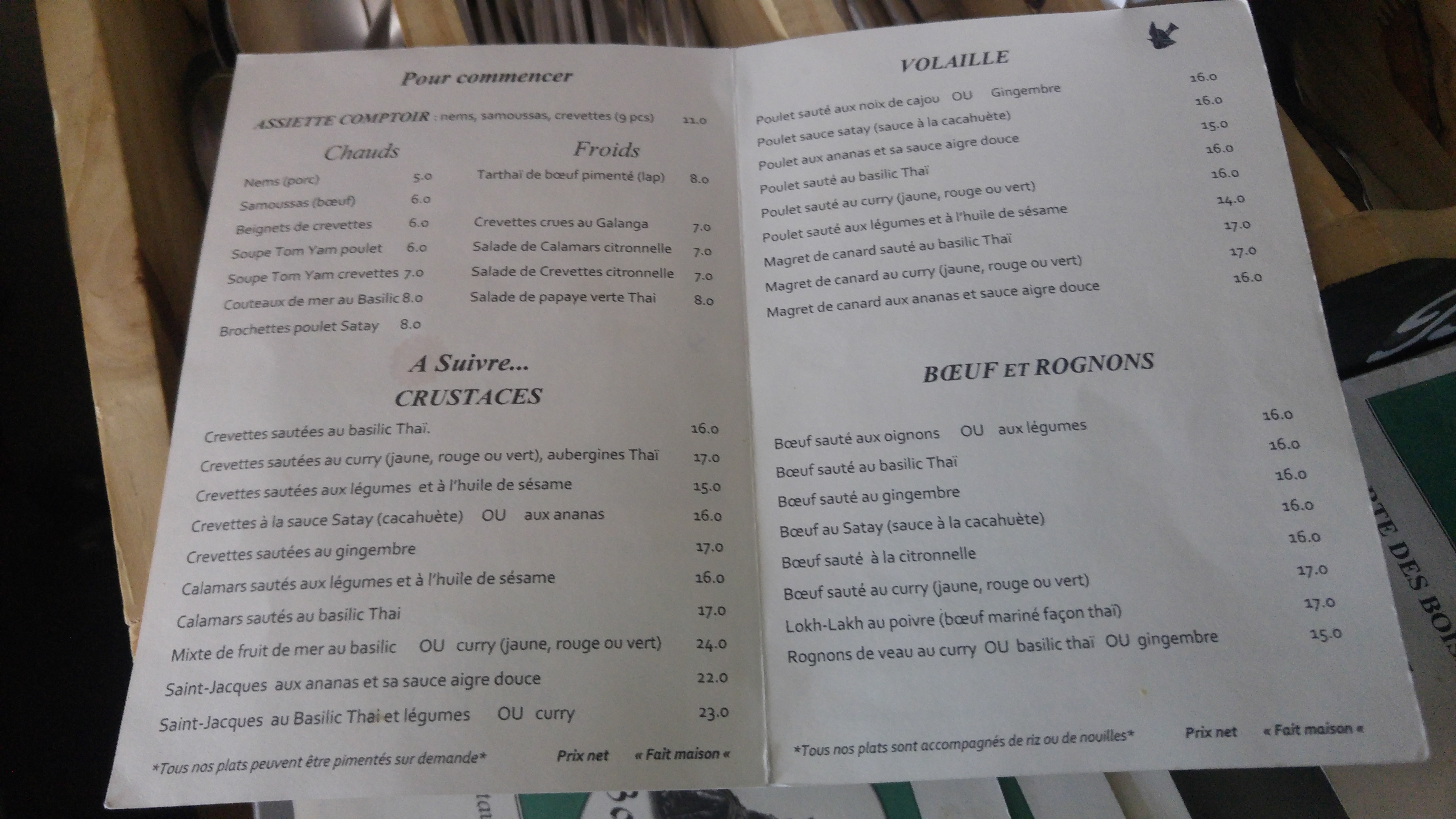Petite pépite Thaï ou l'on se régale. Mention particulière aux rognons de veau cuisinés de différentes façons, au basilic, au curry, au gingembre...