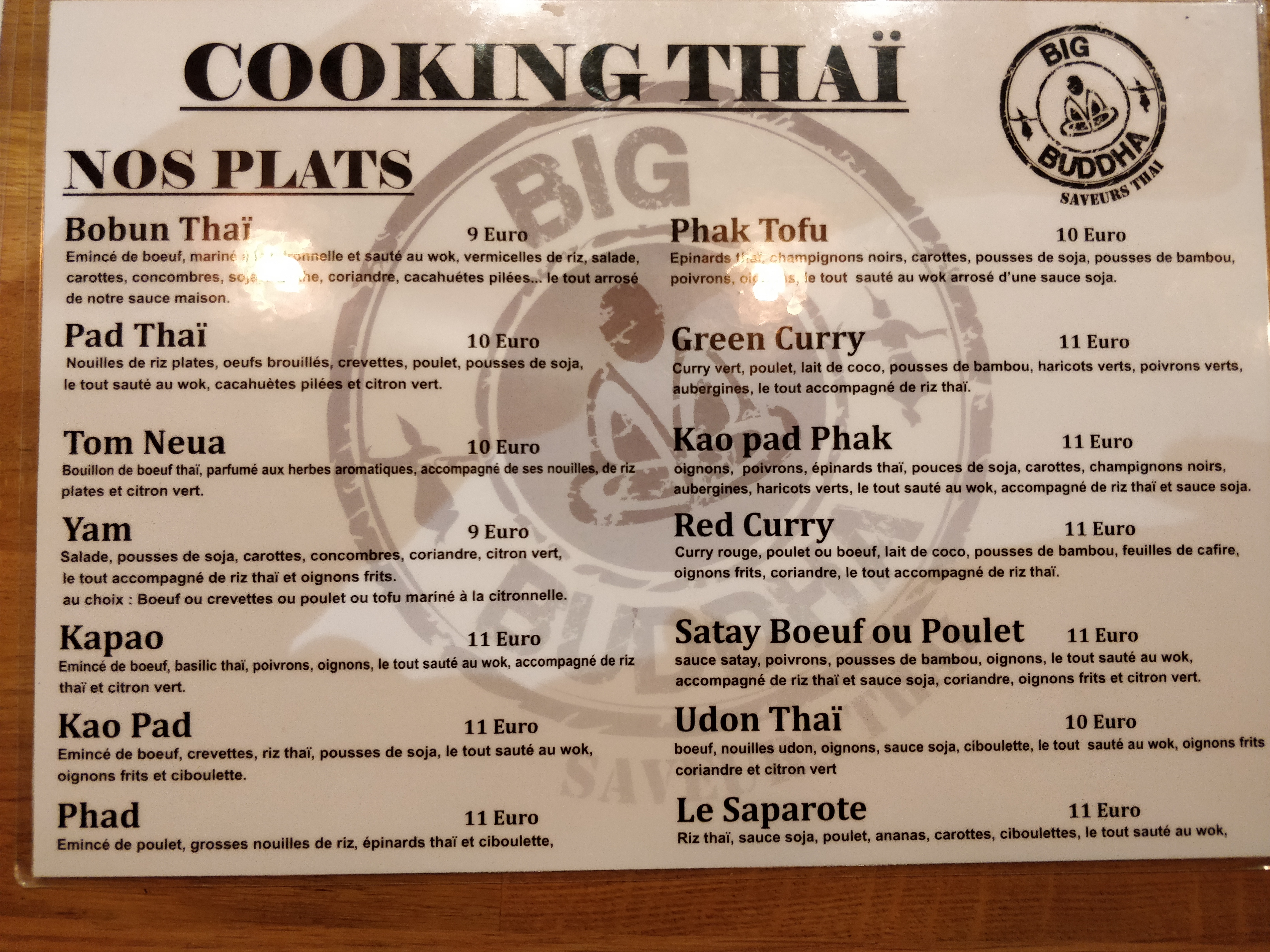 J’ai commandé le pad thaï poulet que je recommande vivement ! C’est un lieu agréable où l’on se sent à l’aise notamment grâce au personnel chaleureux. Un 5 étoiles pour le big buddha