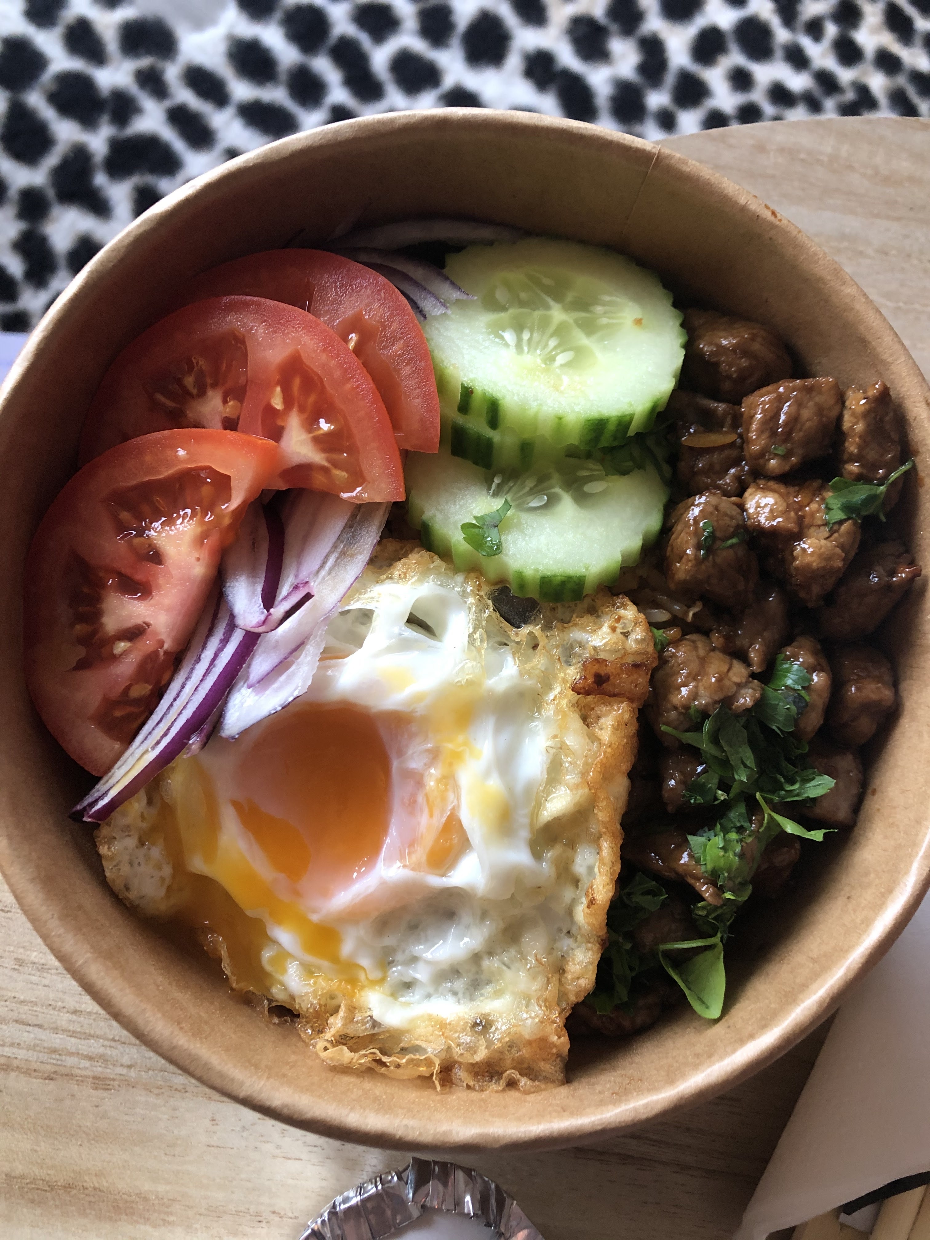 Le « loc lac » n’est pas un loc lac. C’est plutôt du riz sauté à la sauce soja avec du bœuf. Quand le vrai loc lac est sensé être du riz avec de la sauce tomate.