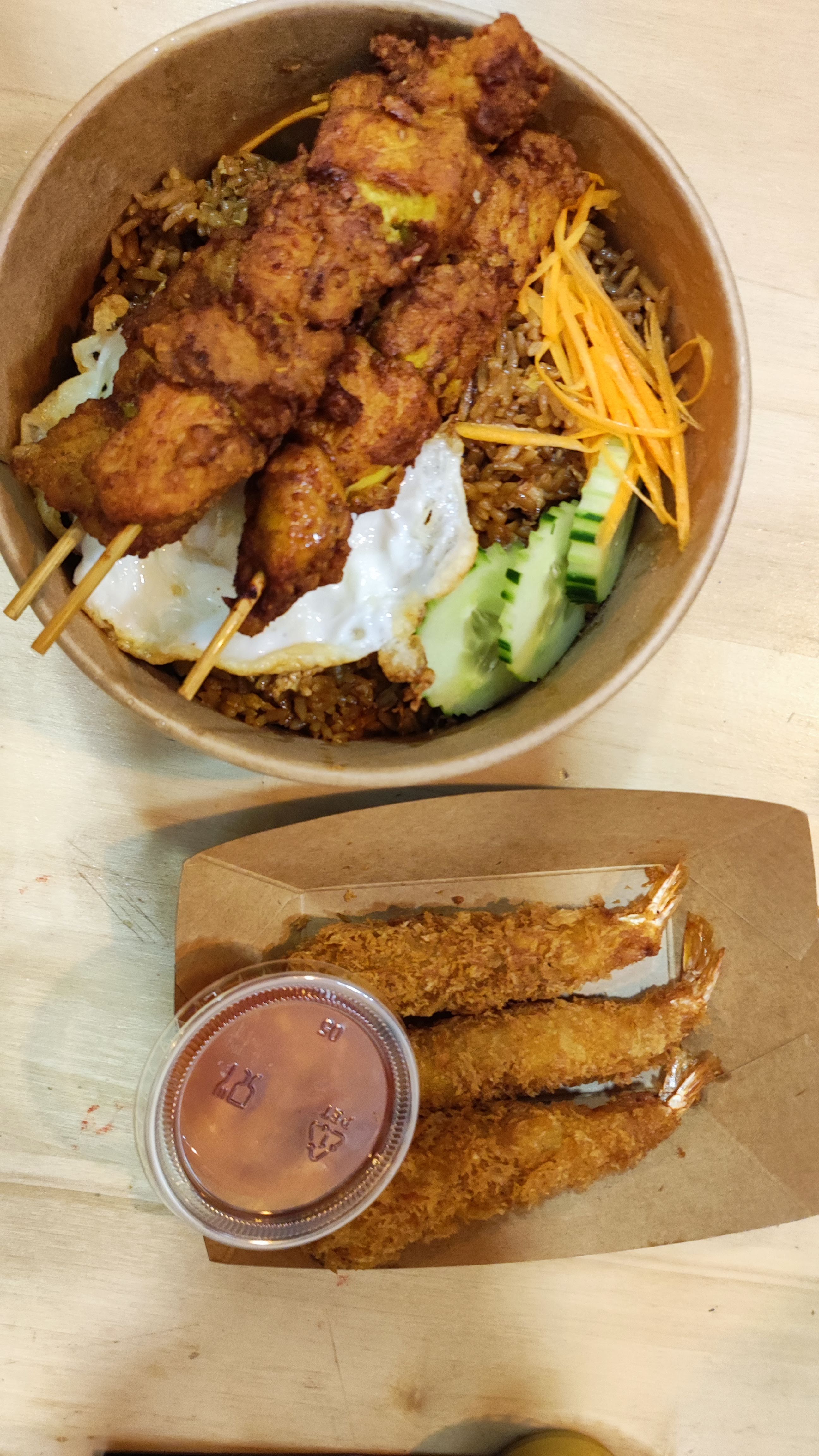 Nourriture méga délicieuse. Nous avons mangé du curry vert et du poulet satai. Des portions très généreuses et très savoureuses. M'a catapulté un instant en Thaïlande :-)