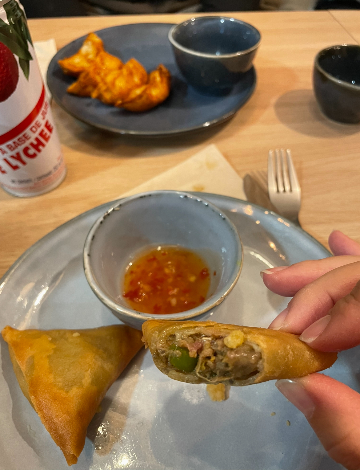 Dîner succulent de l’entrée au dessert. Le patron est très sympa et la cheffe cuisine divinement bien 🇹🇭🇹🇭🇹🇭 Gyozas a la pomme 🍎🙌