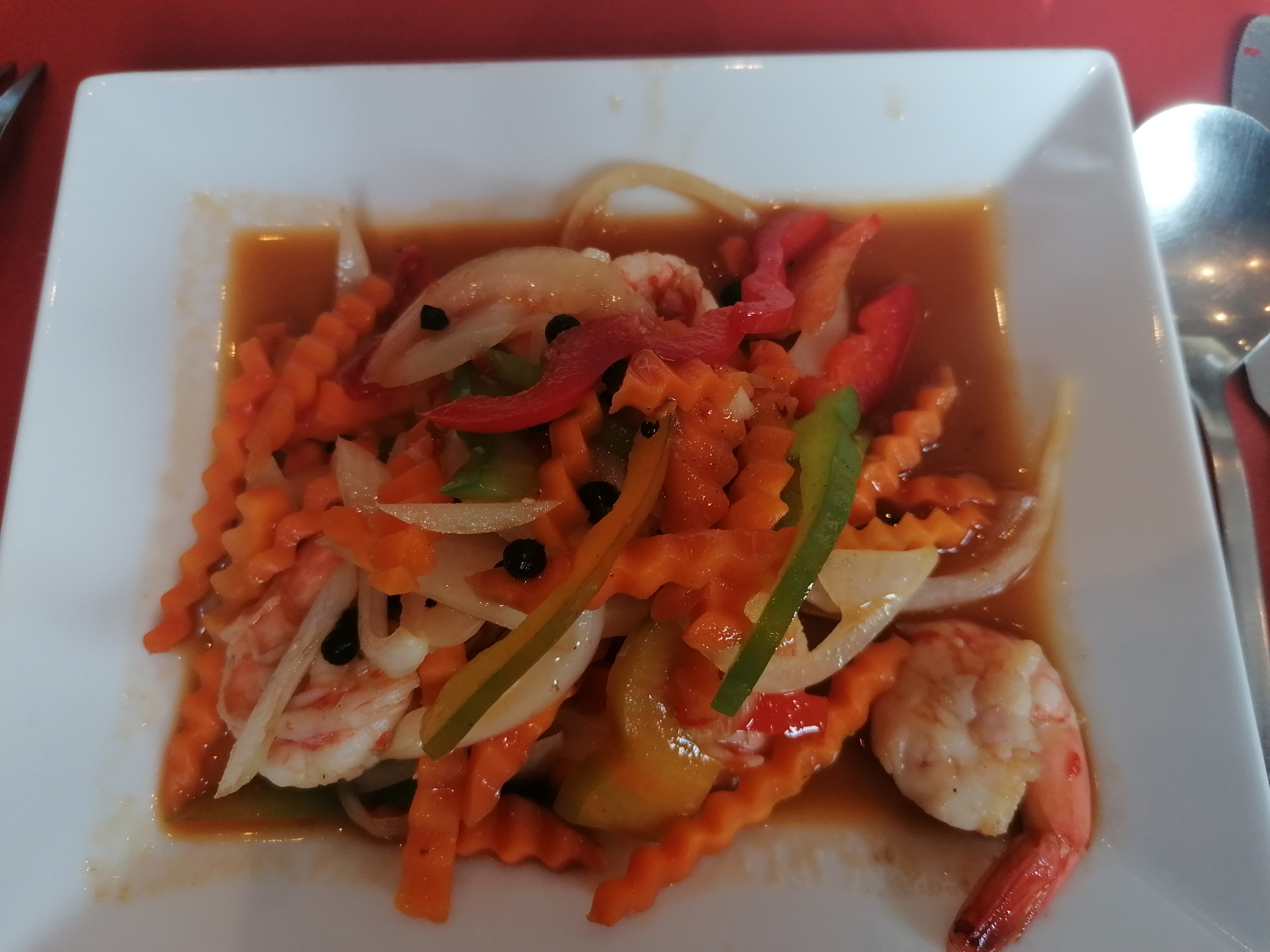 Certains plats n'incluent pas les légumes, c'est dommage (ex : crevettes au poivre et ail). D'autre part, il est bon de rappeler que les boissons accompagnant le plat principal doivent être servis au plus tard en même temps que celui-ci et non pas après réclamation. Avis favorable cependant.
