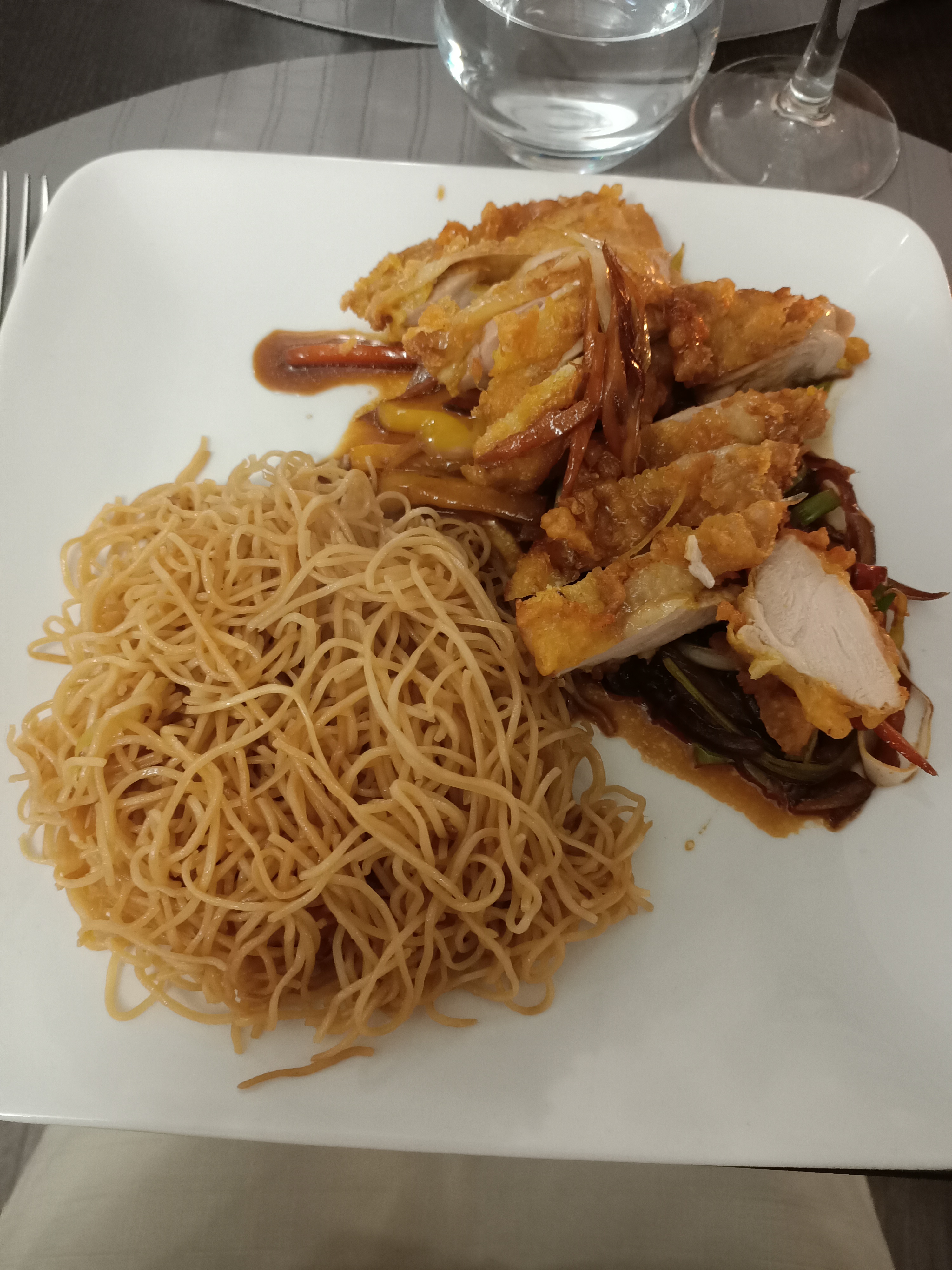 Vraiment un régal quand je vois un commentaire plus bas qui critique la présentation..... l important c est le goût et il y est c est vraiment très bon . La salade de bœuf en entrée et le pad thai un délice !