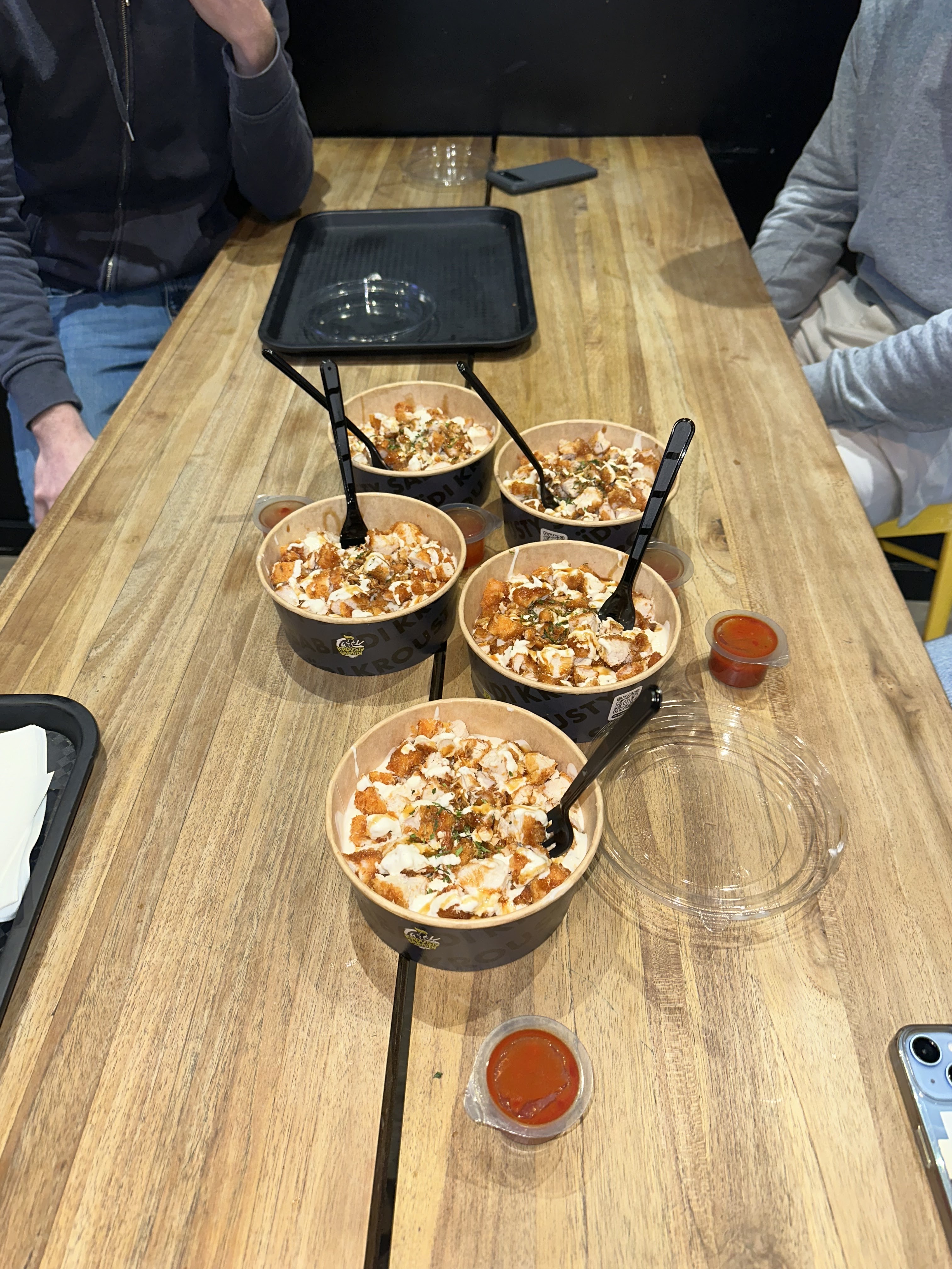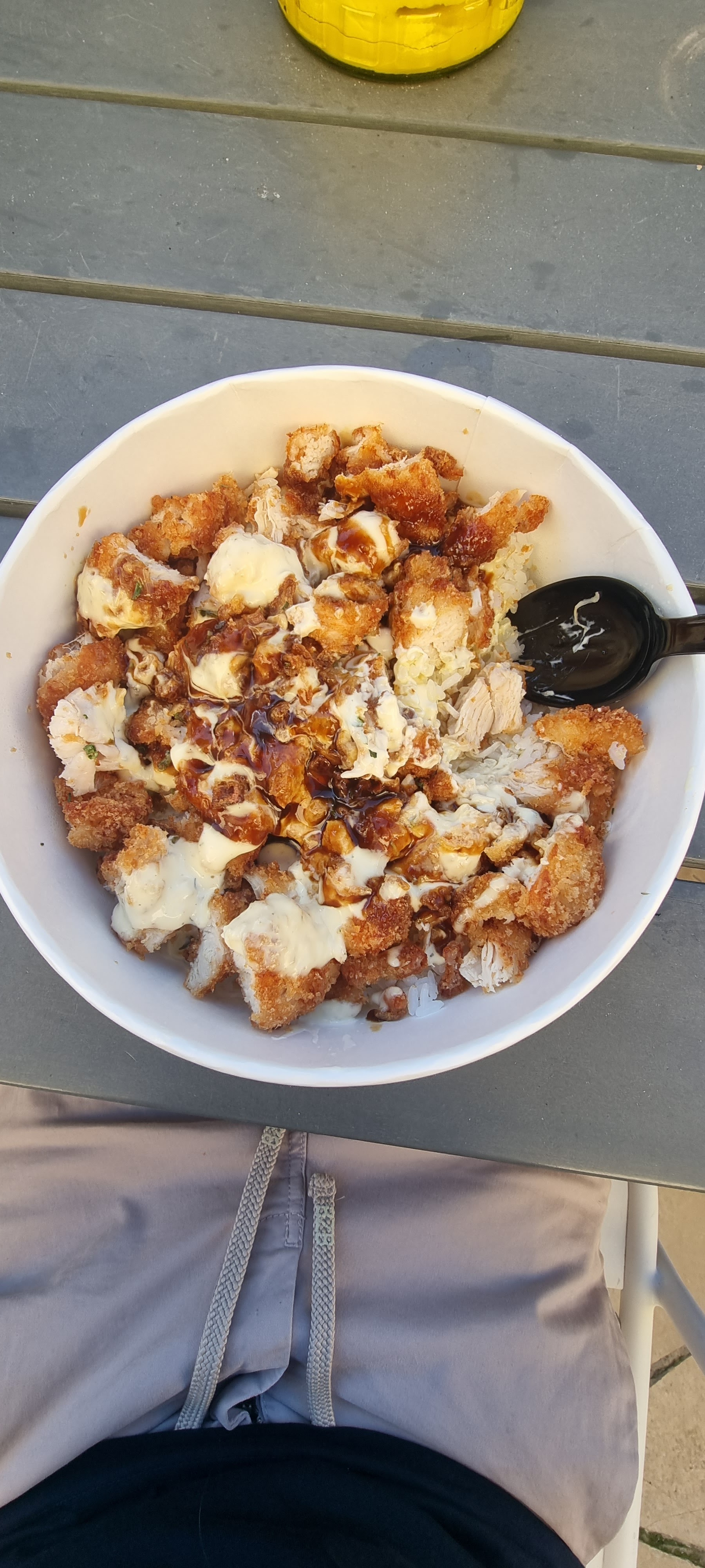 À fuir, le poulet crousti sans sauce, pas d’assaisonnement, un riz blanc presque pas cuit, et un poulet plus que sec. 20€ et 45 min d’attente pour ça c’est une honte