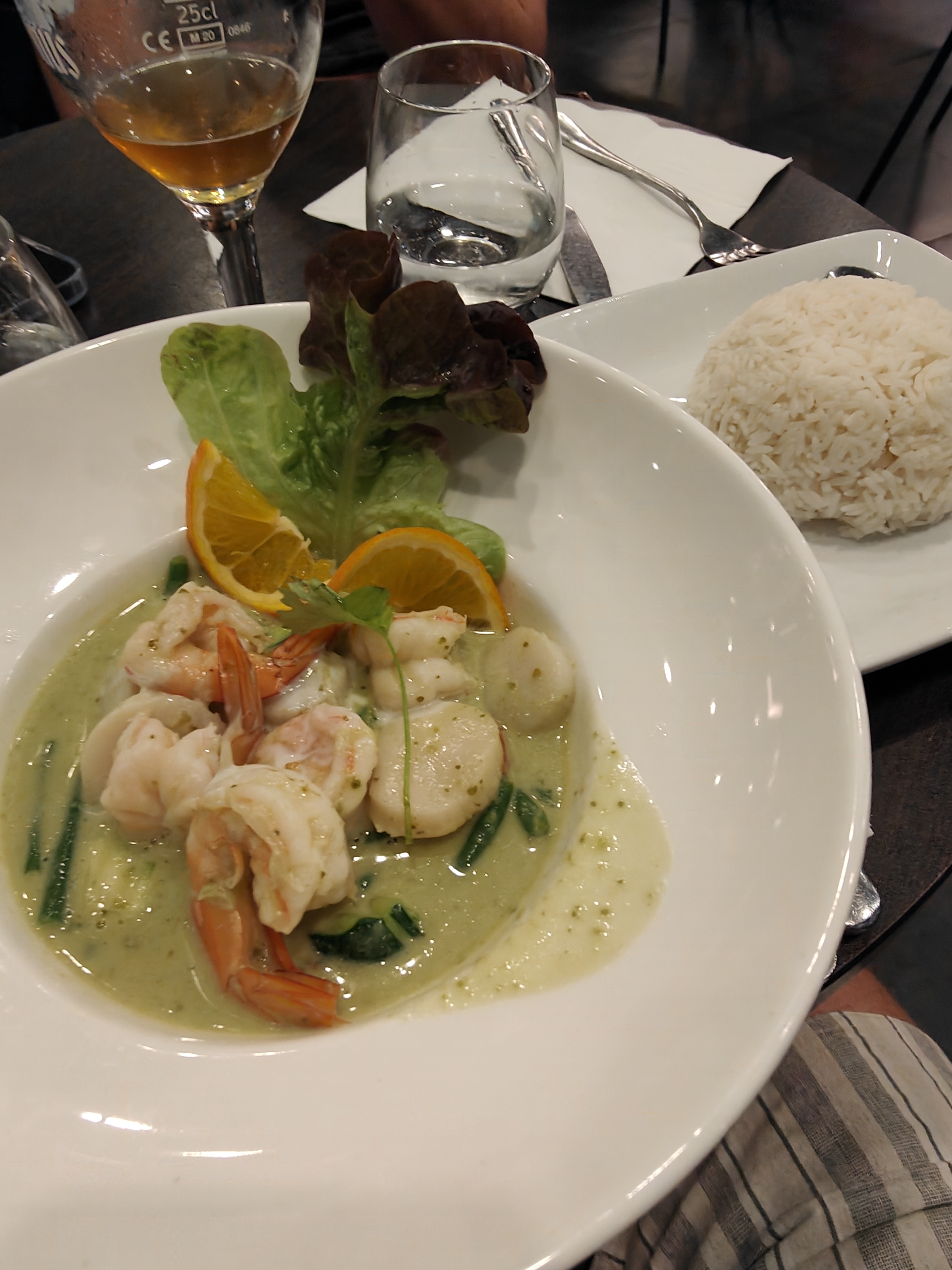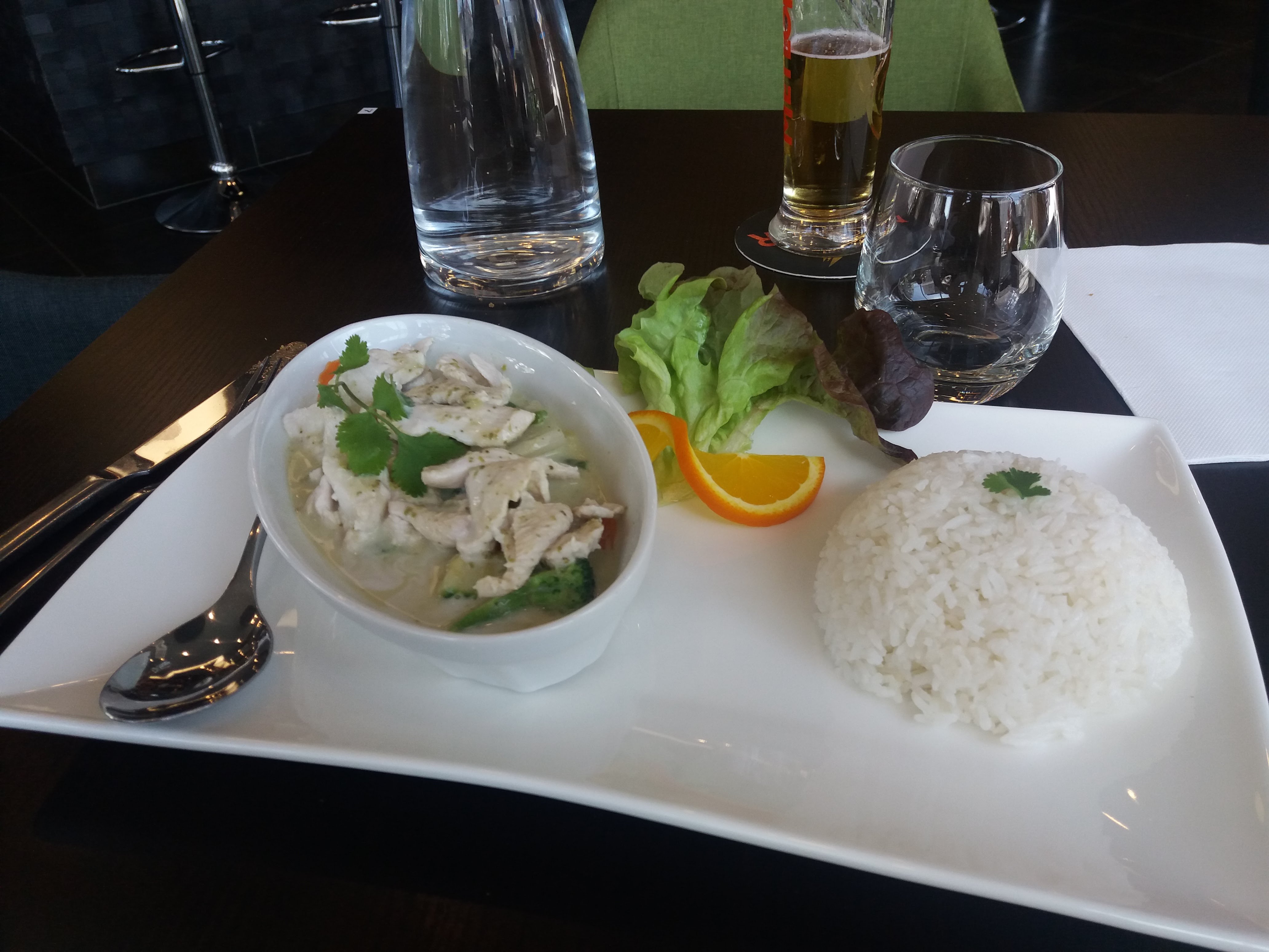 Très bien. Leur curry vert est bon. Dommage d’y retrouver des légumes régionaux. On aurait préféré des légumes d’Asie pour être le plus fidèle possible au plat d’origine. L’eau de coco dans sa coco c’est une merveille !!! Ne la retirez jamais de la carte !! Bonne continuation !