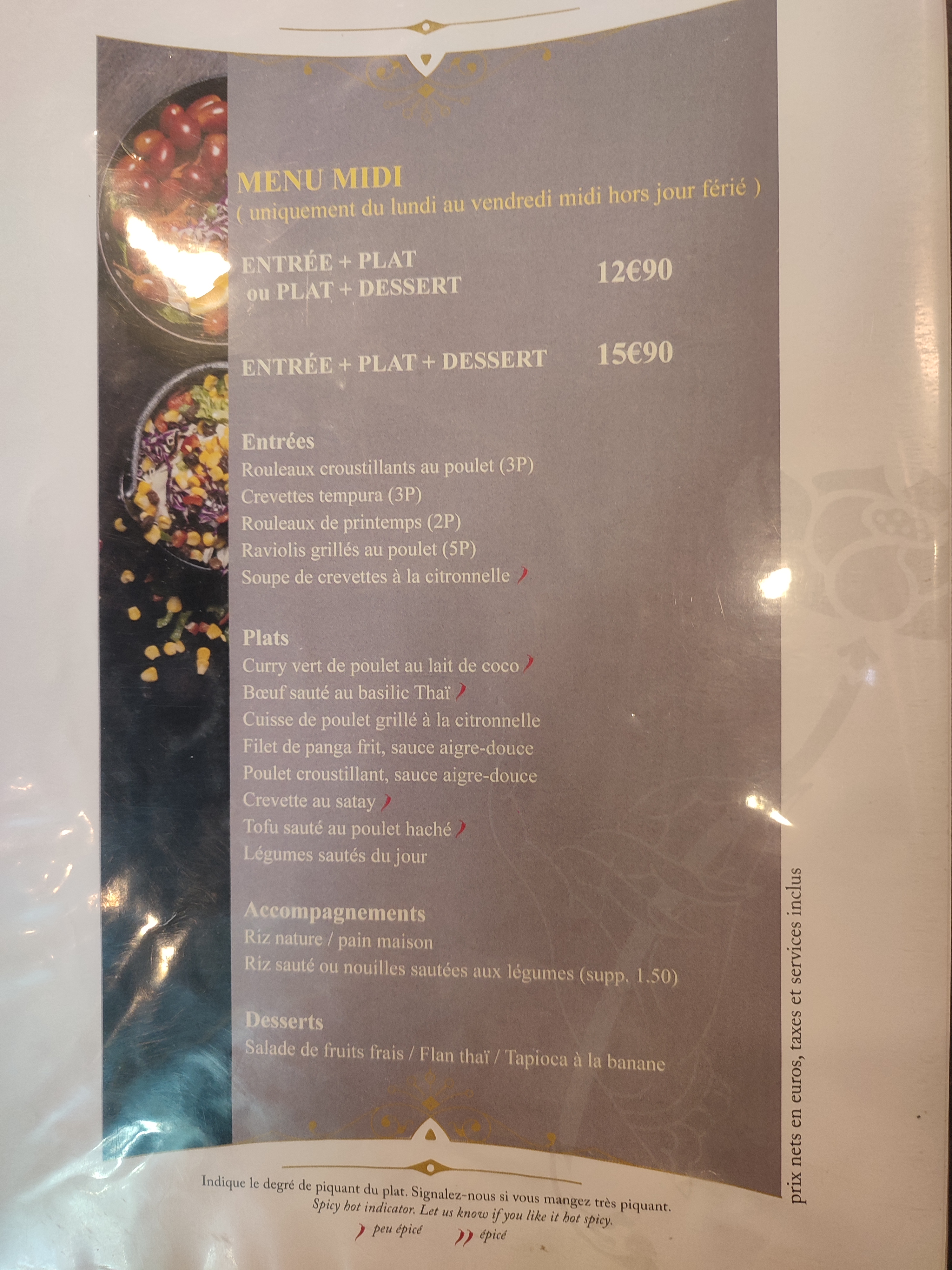Restaurant et personnel agréable. Un menu thaï à un prix très abordable. Des assiettes servies généreusement, et de bonne qualité.