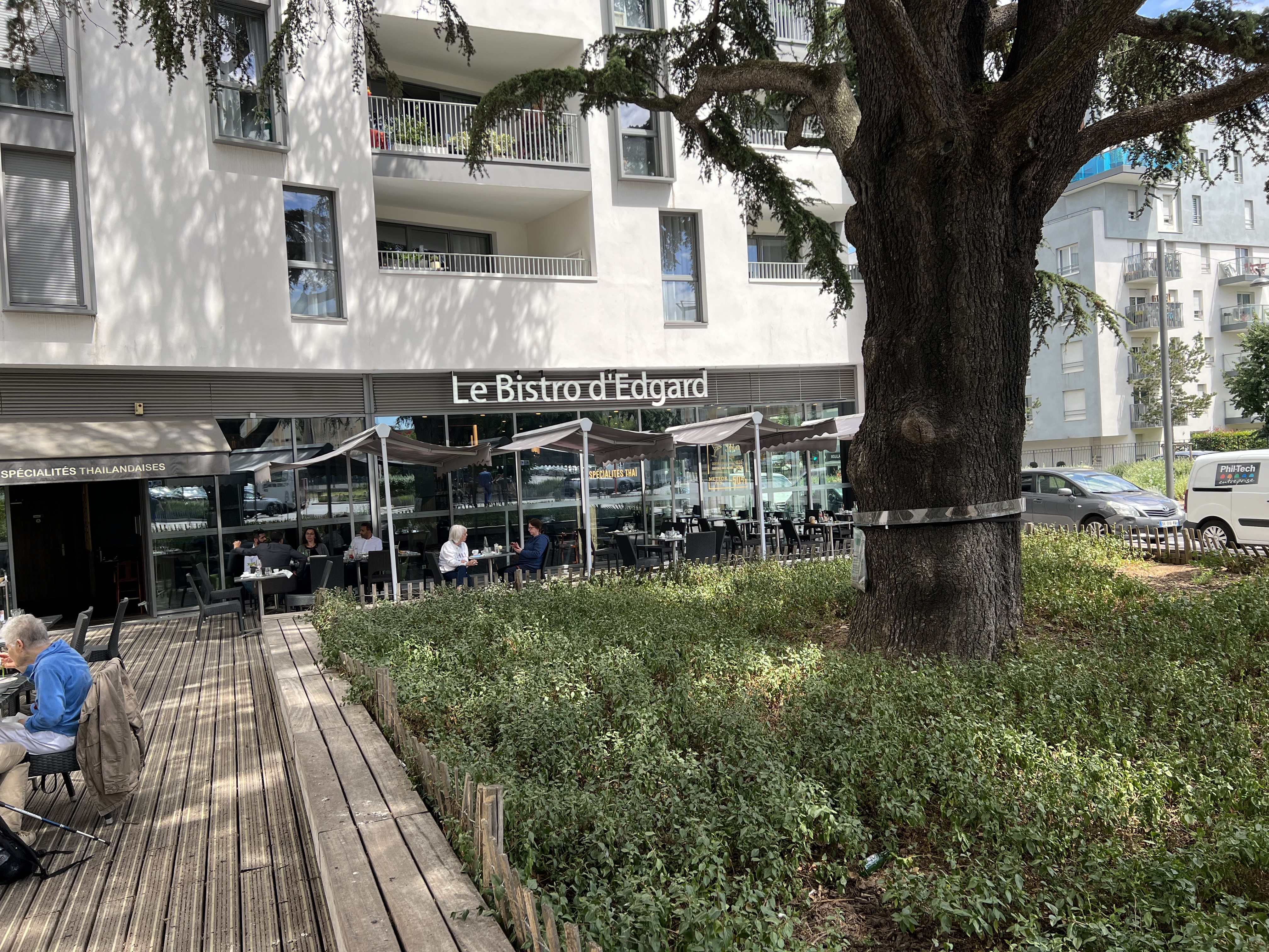 Pourquoi avoir fait une franchise de Bistro d'Edgard, si au début ça ne fonctionne pas, puis en cours de l'année changez la carte en spécialité Thaï avec conservation de la franchise mais trop de plat sur la carte. Le patron est asiatique pour une franchise française de groupe C'est impossible que ça soit fait maison avec autant de plat sur la carte. La carte des boissons est correcte sauf que les prix sont un peu élevés dans le quartier. L'ambiance dedans Bruyant, les clients ne se parle pas entre eux, pas de zone de rencontre, pas d’âme, trop de bruits, impossible de discuter avec mes amis dedans. La décoration est correcte, les toilettes sont aussi correctes. Par contre c'est une bonne initiative pour le patron d'avoir mis un cendrier mais pourquoi devant la porte, car les clients qui sortent fumer reste devant l'entrée pour fumer résultat la porte automatique s'ouvre sans arrêts la fumer rentre pour les non-fumeurs on avale toute la fumer. Le Piano est joli même s’il prenait de la place, c’était le seul dans le quartier mais personne qui jouer. Résultat le piano à disparût. Coté staff, Oui l'équipe la seule personne que j'aime me faire servir est le garçon, charmant, souriant, gentil, attirant avec moi et mes amis. La fille elle as du mal à sourire. La femme du patron est correcte. Happy Hour existe sur certaines boissons. Côté horaire il y a un problème de taille au début avec les Happy Hour entre 16h à 20h, mais jamais ouvert à 16h mais vers les 18h40 voir une tard tout dépend, si le patron, sa femme ou l’équipe sont bien luné. Problème de communication qui a était, problème résolut. Le Dimanche après-midi fermé ouvert le soir bien, mais moche, si on n'a besoin de prendre un café sur la place du cèdre. Ont fait un retour forcé ailleurs car dans le quartier à part des franchises on n'est servie que de ça. Si je cherche pour prendre une boisson dans le quartier j'y vais mais je vais attention uniquement au prix c'est aussi cher dans le quartier.