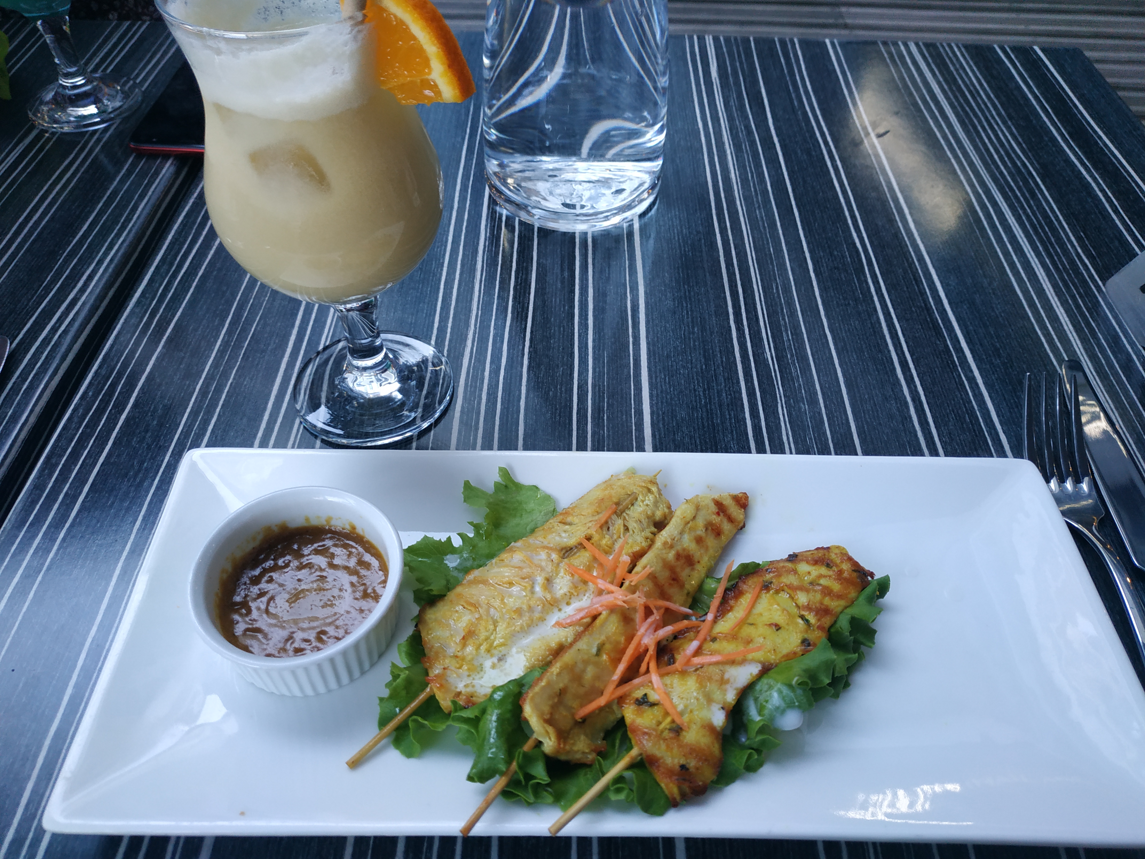 Très bon coktails, par contre au niveau du plat pas du tout copieux. Déçue du tigre qui pleure pour 20euros sans accompagnement un effort peut être fait pour la quantité servie en comparaison à d'autres thai du même standing je ne recommande pas pour le repas. Dessert correct. Je recommande pour les coktails