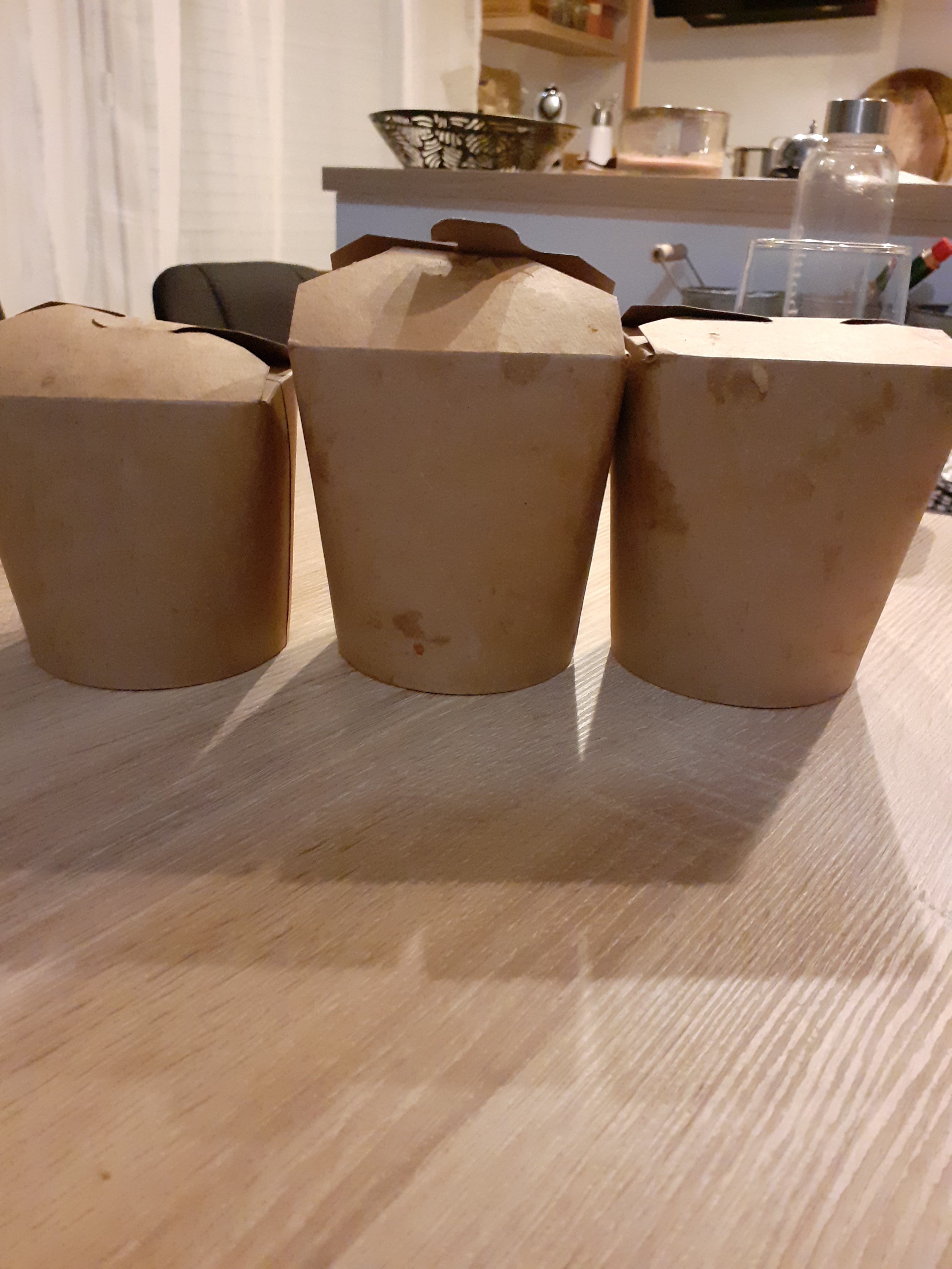 1 fois pas 2. Depuis 2 ans on se dit allez on va tester. Ce soir on commande avec U....E.... 2 entrées et 2 plats. Les 4 sans saveur. 1 plat de 4 nems crevettes mais sans crevette à l'intérieur. 1 plat de Pat thaï crevettes mais avec du poulet dedans en plus. Ma femme est végétarienne depuis 20 Ans et n'as donc pas mangé. Le tout 44€.