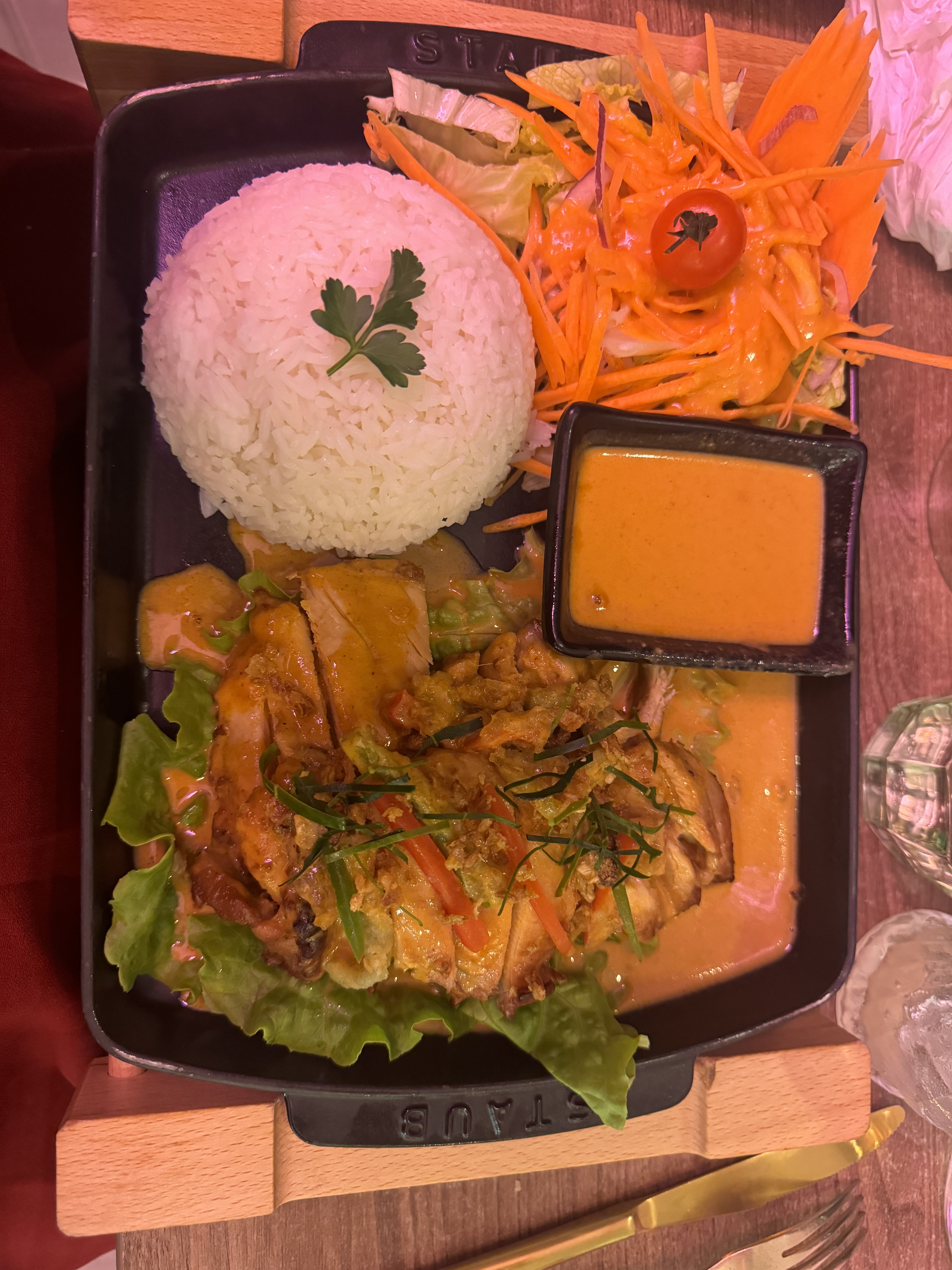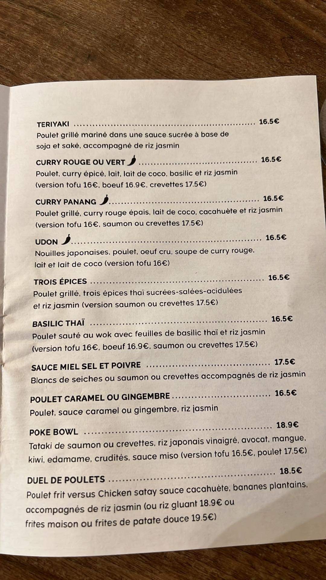 Posté le 01/10/2023 à 17:15"La première fois que je teste ce resto. Et bien FRANCHEMENT PAS DÉÇU!! 👍🏼 Bien accueilli, petit canapé pour attendre sa commande en toute tranquillité. Vu de l'extérieur rien de plus banal, et quelle surprise de voir l intérieur avec un style cosy/chic, très sympa. Le duel de poulet était très bon, bien assaisonné et goûtu. Le curry panang 💛🧡❤WOUAW un VRAI DÉLICE pour les papilles. Très bonne découverte. JE REVIENDRAIS C EST CERTAIN!!! Bravo👏🏽👏🏽👏🏽"