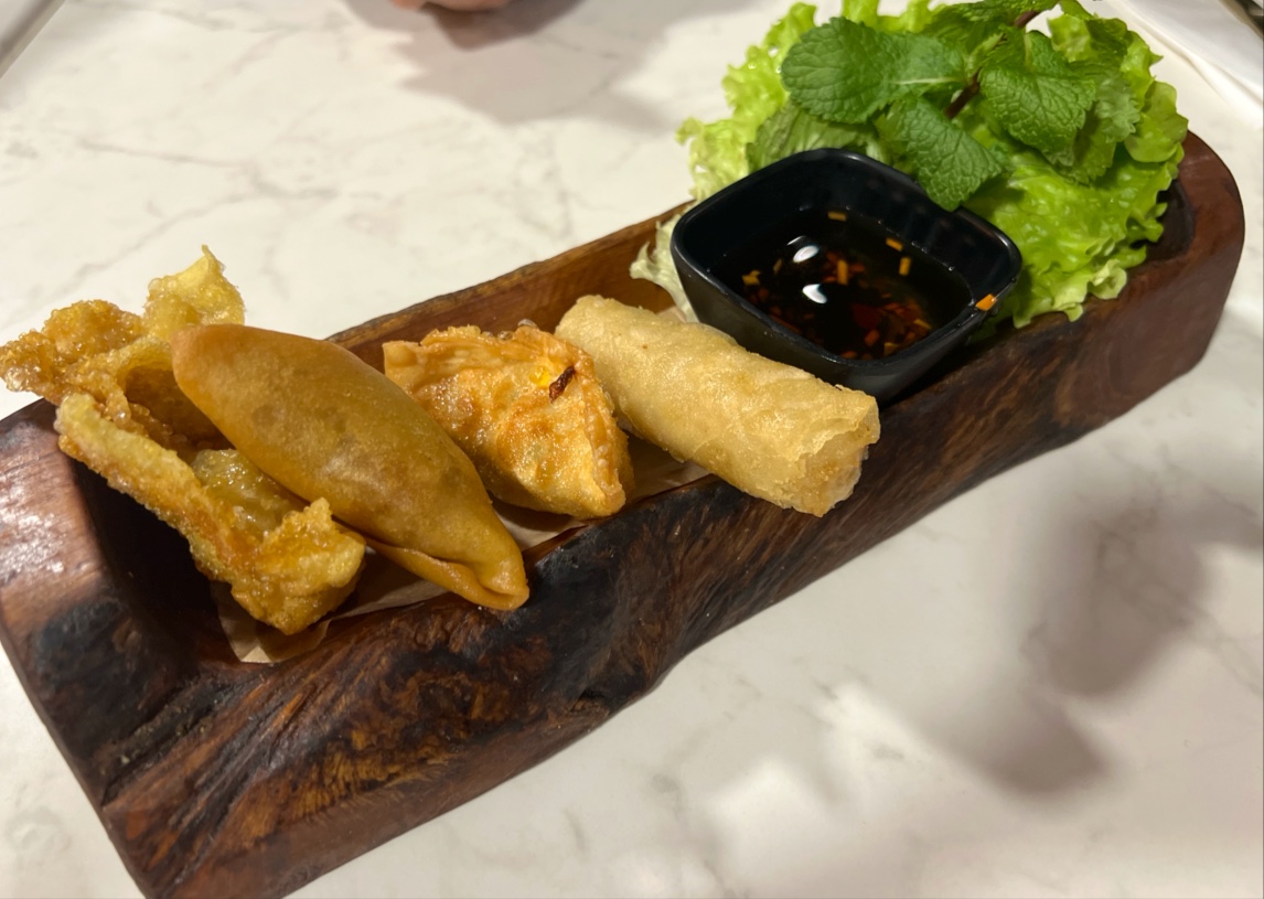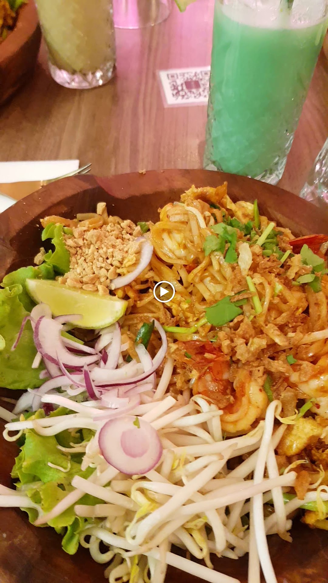 "Une belle aventure gustative avec les petits pains et les nems aux gambas en entrée , le duel de poulet et le fameux pad thaï!!!"