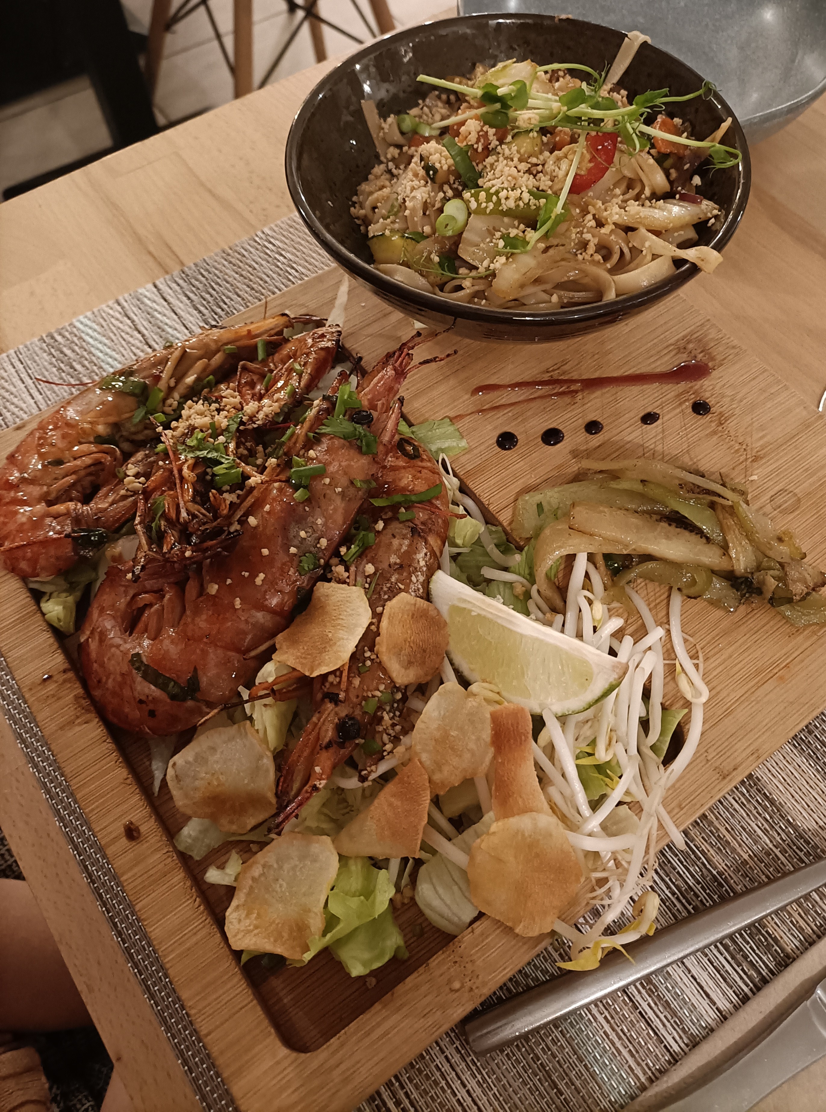 Enorme pad thai aux gambas, très savoureux. J'ai bien aimé la crème brûlée coco citron aussi.