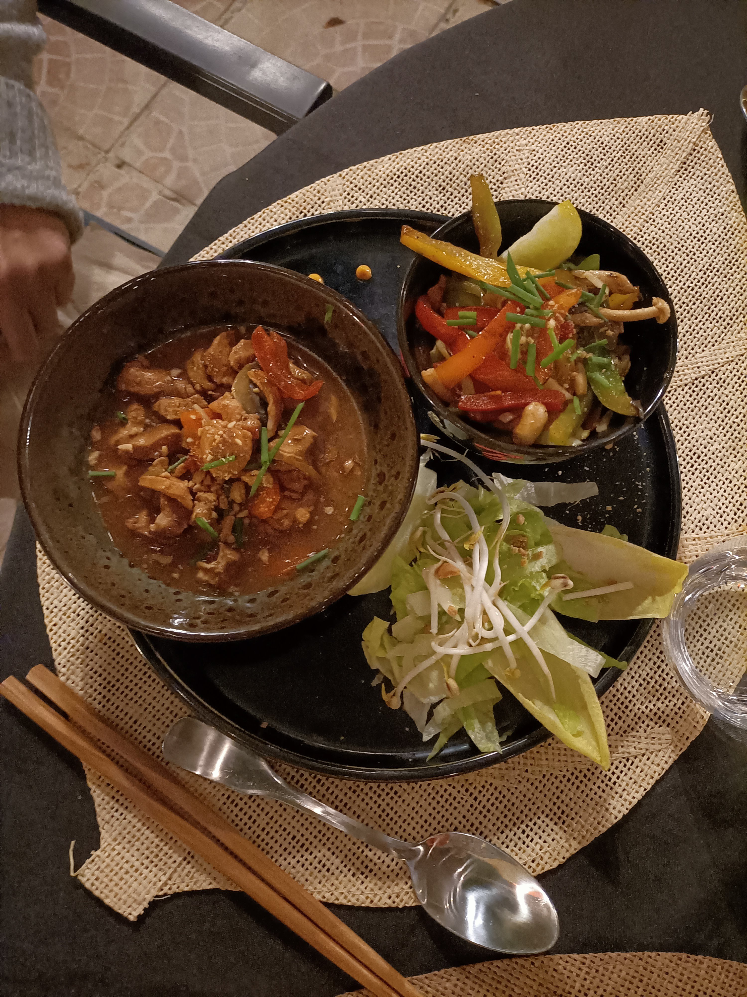 Nous avons pris à emporter un bobun et nouille de légume . Sincèrement moi qui adore manger asiat j’ai pas forcément apprécié .. C’est dommage j’étais très heureuse qu’il ouvre