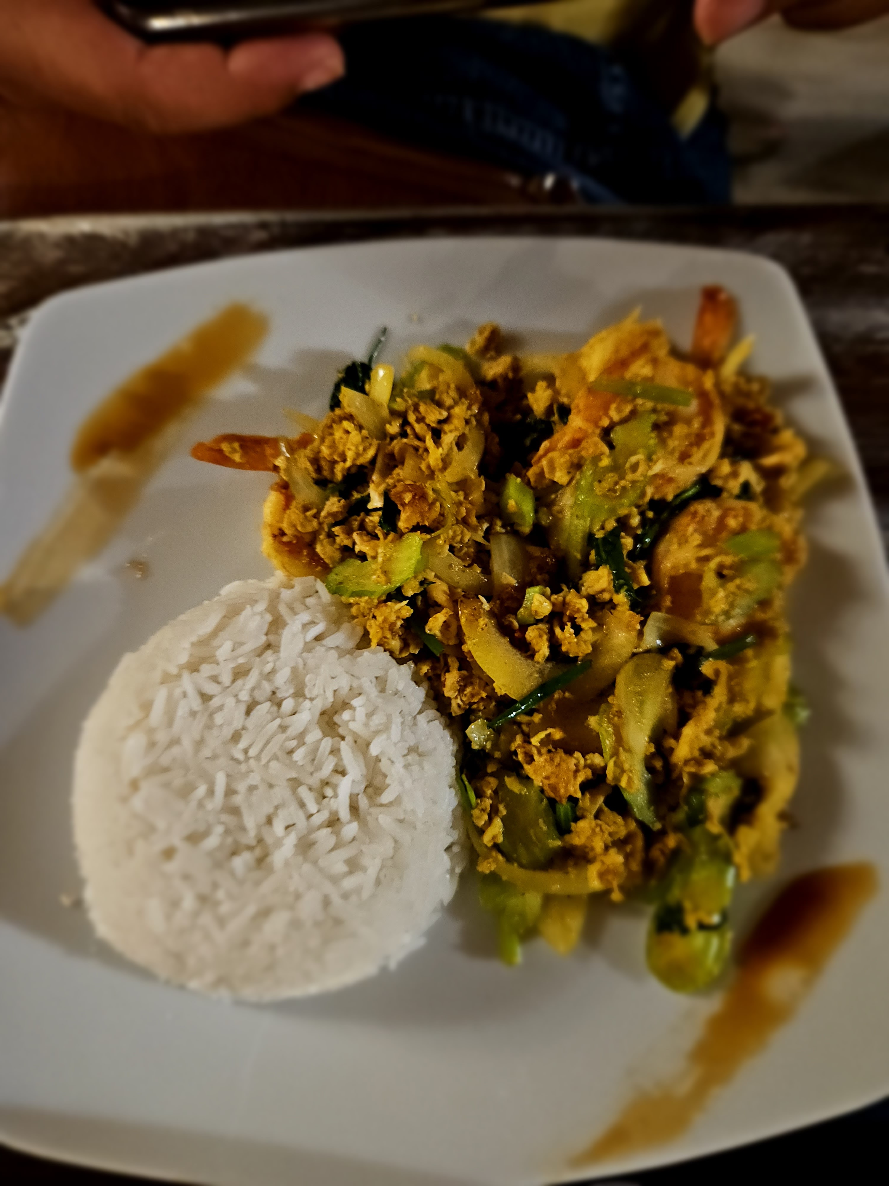 Posté le 26/10/2023 à 12:47" J'y suis allé après avoir lu les critiques et je n'ai pas été déçu. Le niveau d'épice était personnalisable. La nourriture était très délicieuse. Le personnel était accueillant et parlait également anglais (ce qui est rare en Corse). J'ai commandé le Pad Thai aux crevettes et au poulet au curry rouge avec du riz. Les deux étaient au rendez-vous. J'ai commandé des épices niveau 5 et ce n'était pas une mauvaise décision "