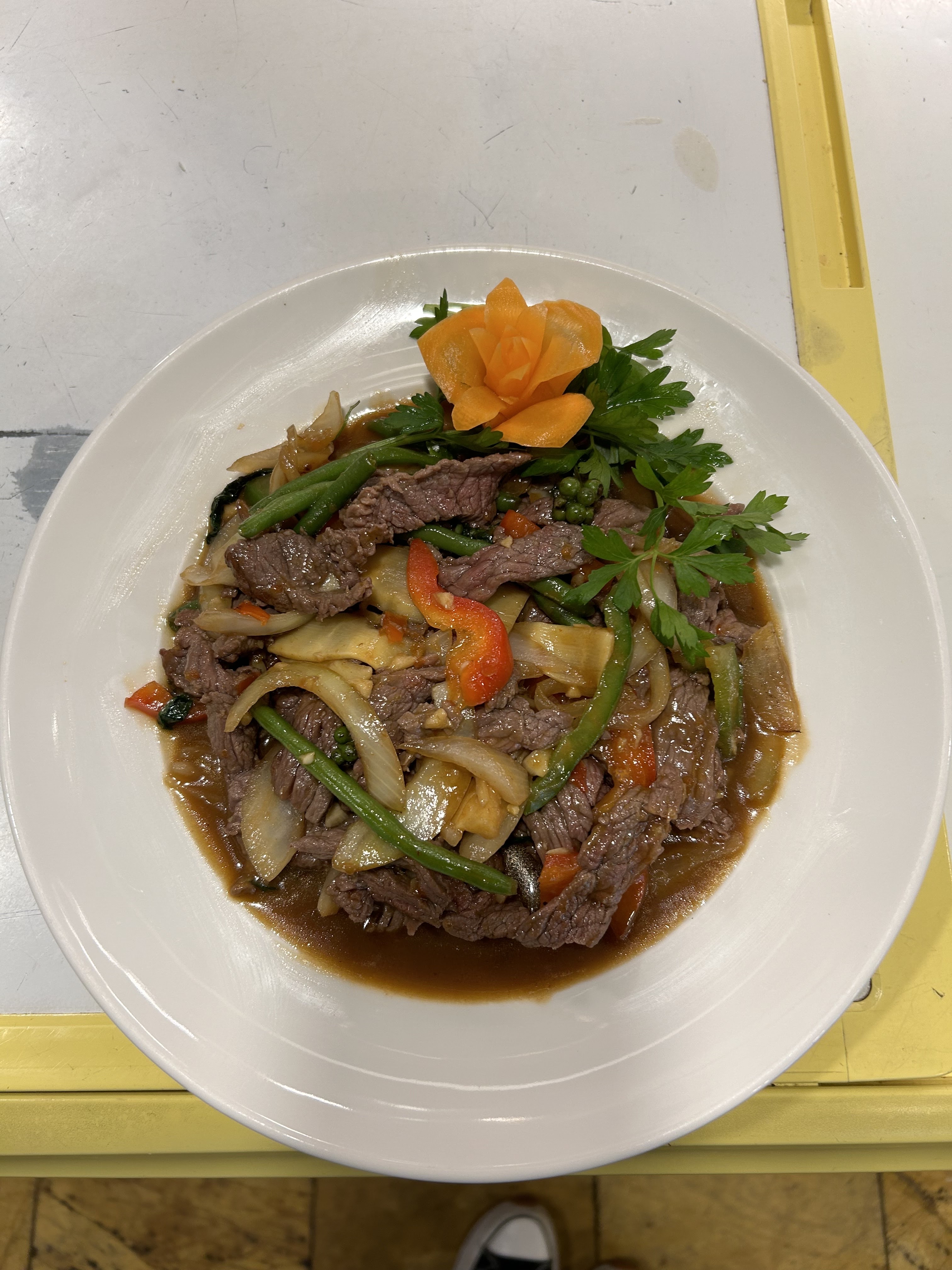 Très déçu , de retour de Thaïlande j’avais hâte de me régaler dans ce restaurant « thaïlandais « Rien à voir avec la cuisine thaïlandaise!! J’ai commandé du bœuf au basilic et mon mari du canard à la sauce piquante .on a eu le même plat même pas pimenté ils ont juste changé la viande et quand j’ai demandé où est le basilic puisque j’ai commandé un bœuf au basilic on me répond que chaque chef a sa propre recette et en plus ça correspondait même pas à la photo sur leur carte .j’ai donc commandé une soupe Tom Yam kung et là aussi je suis désolée mais on est loin de la cuisine thaïlandaise. Une soupe tomate avec champignon et de la citronnelle !! Pour moi ce n’est pas un restaurant thaïlandais mais juste un restaurant asiatique