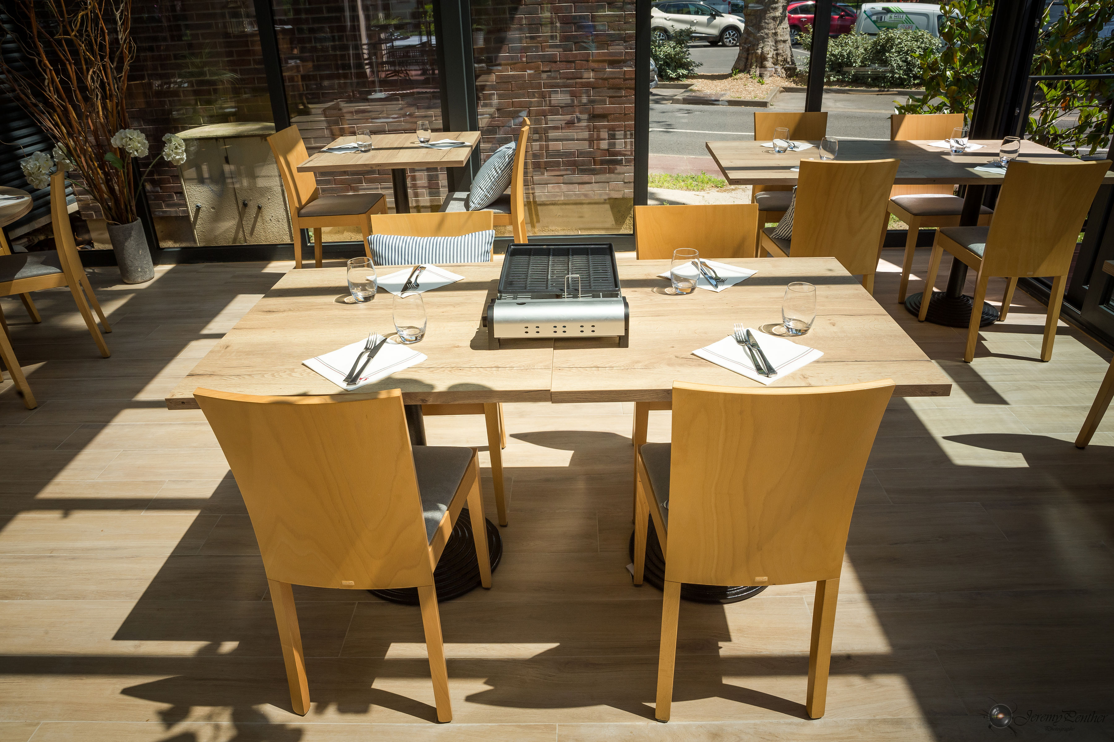 Très beau restaurant clim a l'intérieur très cosy et moderne. Terasse un peu étroite avec chaise peu confortable. Cuisine ok mais probleme de service : apero servit en même temps que l'entrée...dur le mojito avec la soupe.