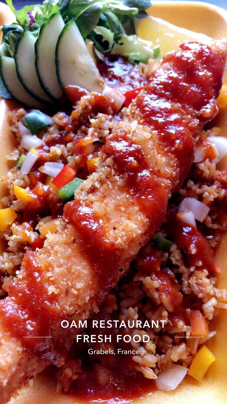 Testé Oam fresh food au Cres à emporter, Super bon je recommande ! Samoussa de bœuf et riz Thai aux légumes, Au top 👌👌