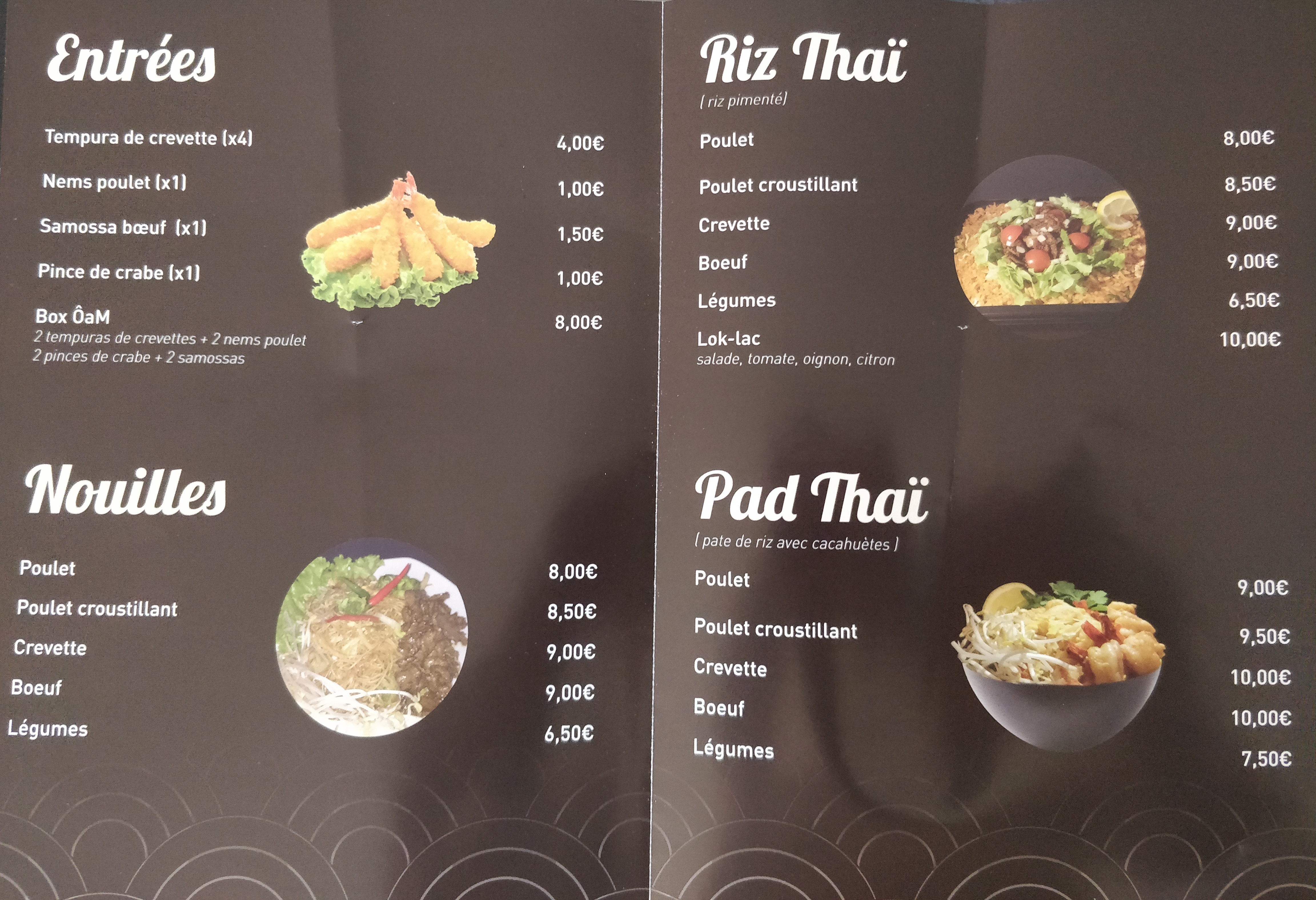 Nourriture thaï à emporter principalement, et éventuellement à consommer en terrasse. Copieux et gourmand.