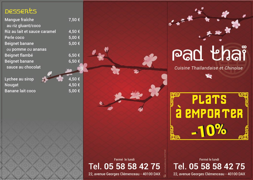 Voici toutes les informations sur le Restaurant thaï Pad Thai qui ce trouve au 22 Av. Georges Clemenceau, 40100 Dax (40). Sur cette fiche vous trouverez les photos, l'adresse, les horaires d'ouverture, le numero de téléphone et les avis clients.Vous pouvez églement rédiger un avis si vous le souhaitez en bas de page.