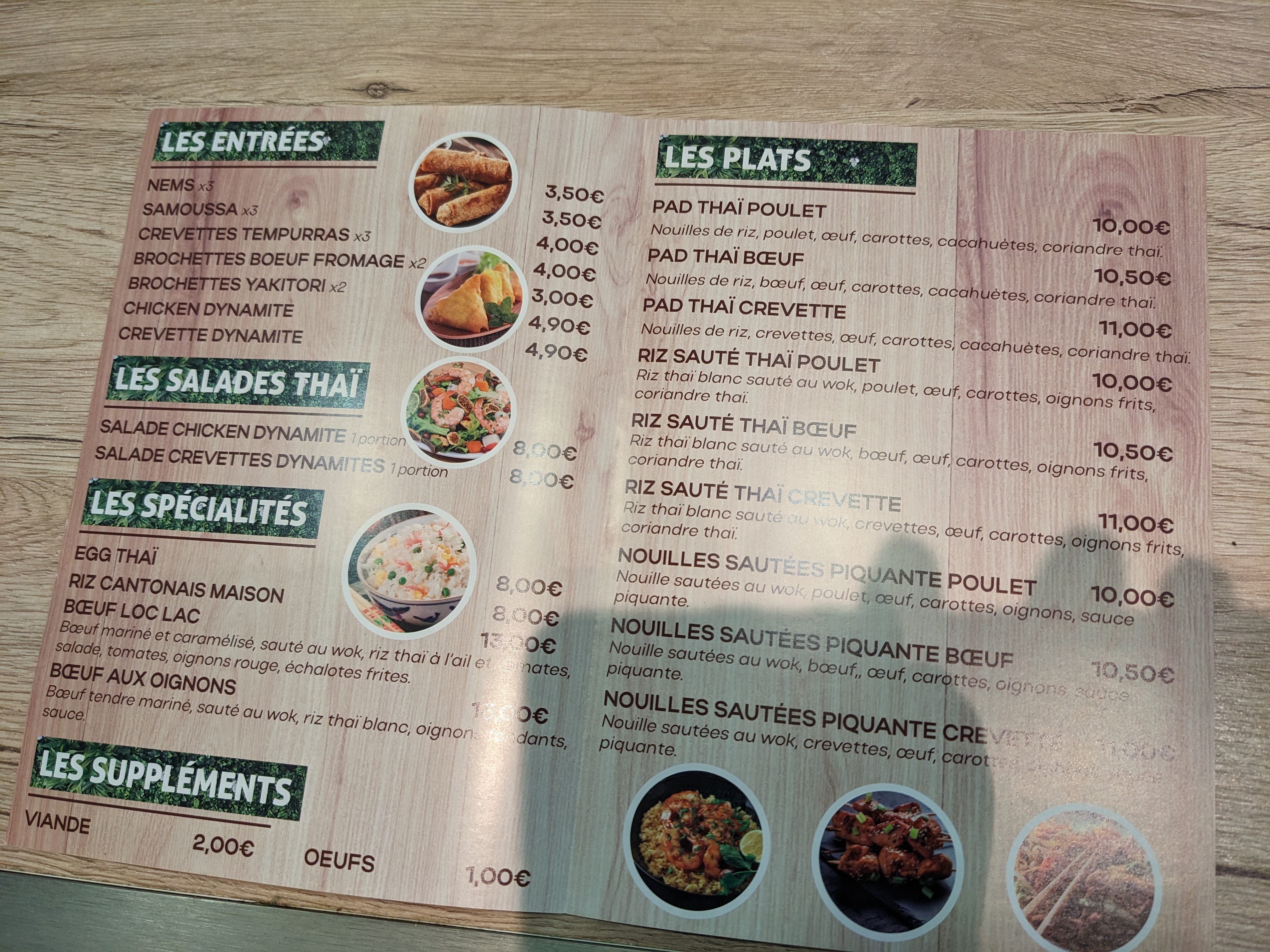 Les entrées (samoussa et poulet dynamite) étaient excellents. Le pad thai aux crevettes était très bon, beaucoup de goûts et suffisamment de crevettes. Les nouilles sautées étaient également très bonnes ! Très bon rapport qualité prix !