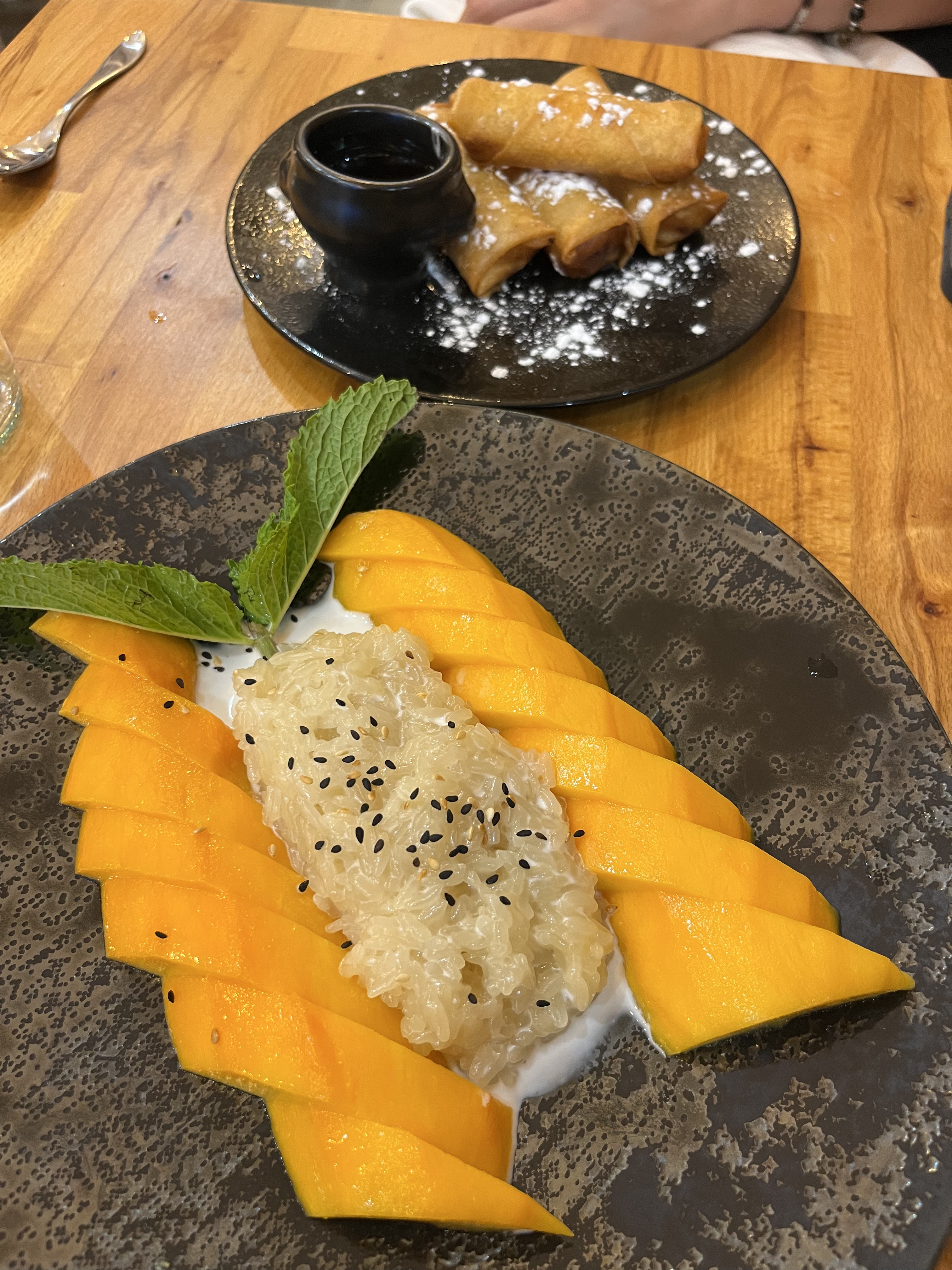 Découvert un nouveau restaurant thaï dans un rue très peu passage. Les plats sont succulentes et mon dessert est special car j’ai demandé en plus un flan dans le riz gluant coco à la mangue ! Je vous conseille vivement