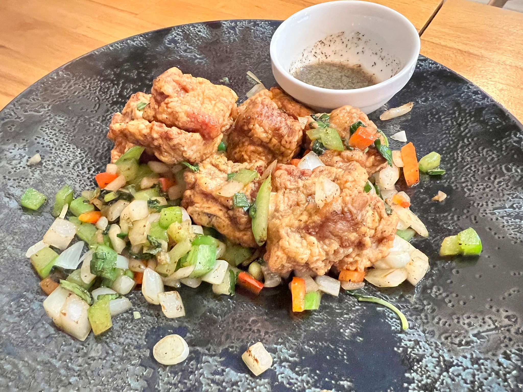 Excellent Porc Frit au Sel et Poivre ! Décoration apaisante et toilette très propre. Continuez comme ça !