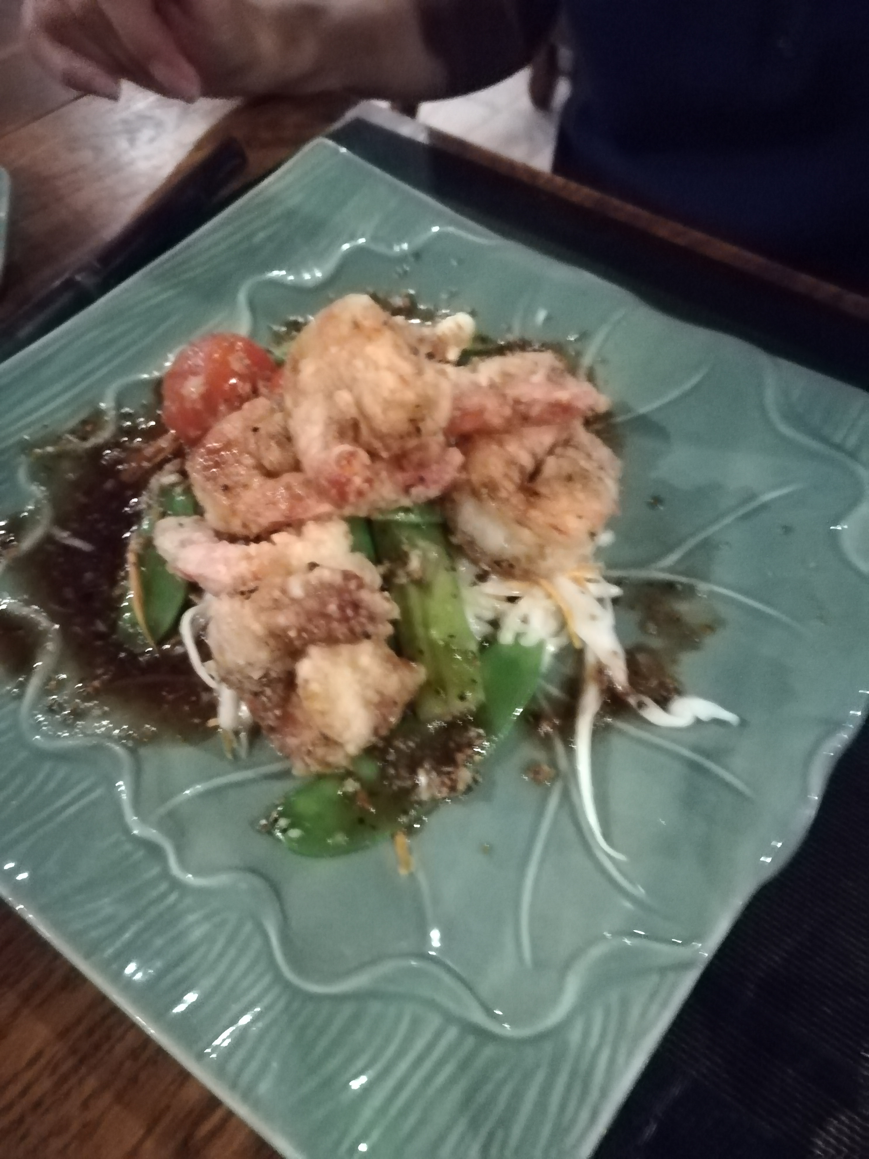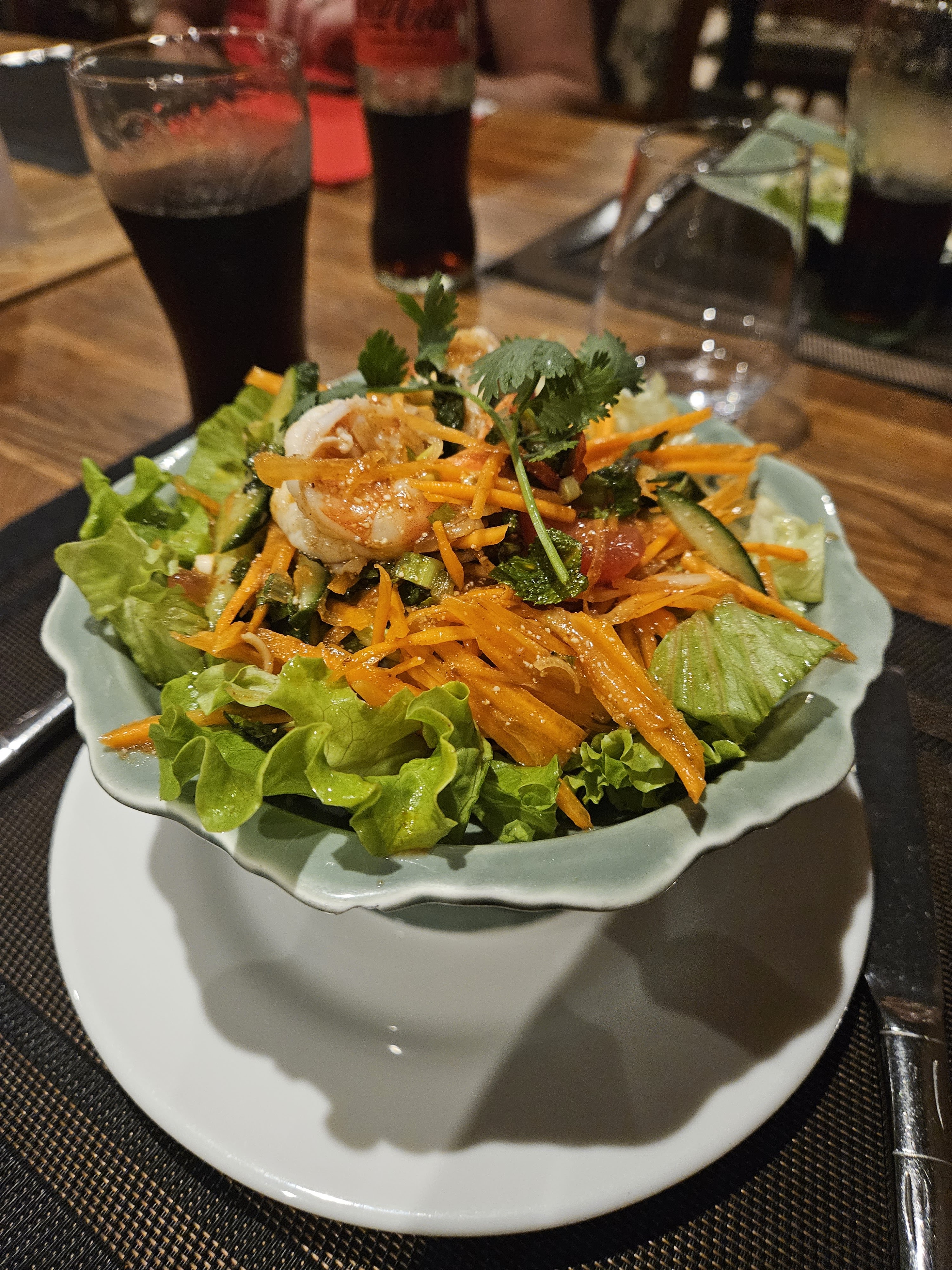 Amateurs de cuisine Thai passer son chemin.. Salade papaye verte assaisonnée au glucose avec de la batavia au fond pour remplir le bol. Crevette pas fraîche. Encore un vrai faux thai chinois..dommage la terrasse avec vue sur la route, c'était sympa.