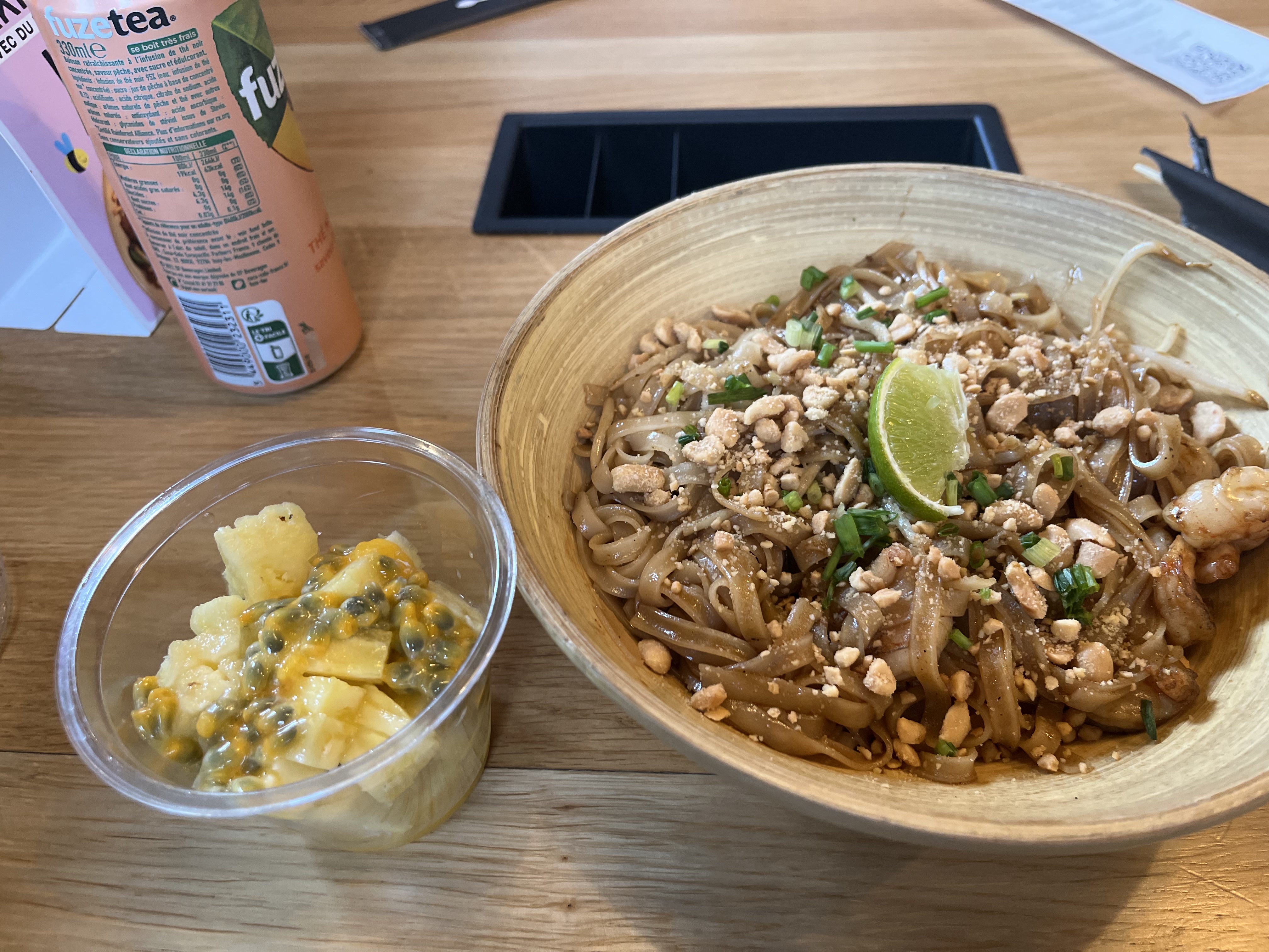 Posté le 17/03/2023 à 19:12"Pad Thai 🤔 = Pâtes trop cuites à la sauce industrielle avec quelques cacahuètes, 4 germes de soja, et 15 gr de poulet. Direct de Bangkok ??? Ce n'est pas faire honneur à la cuisine de rue Thai que j'adore"