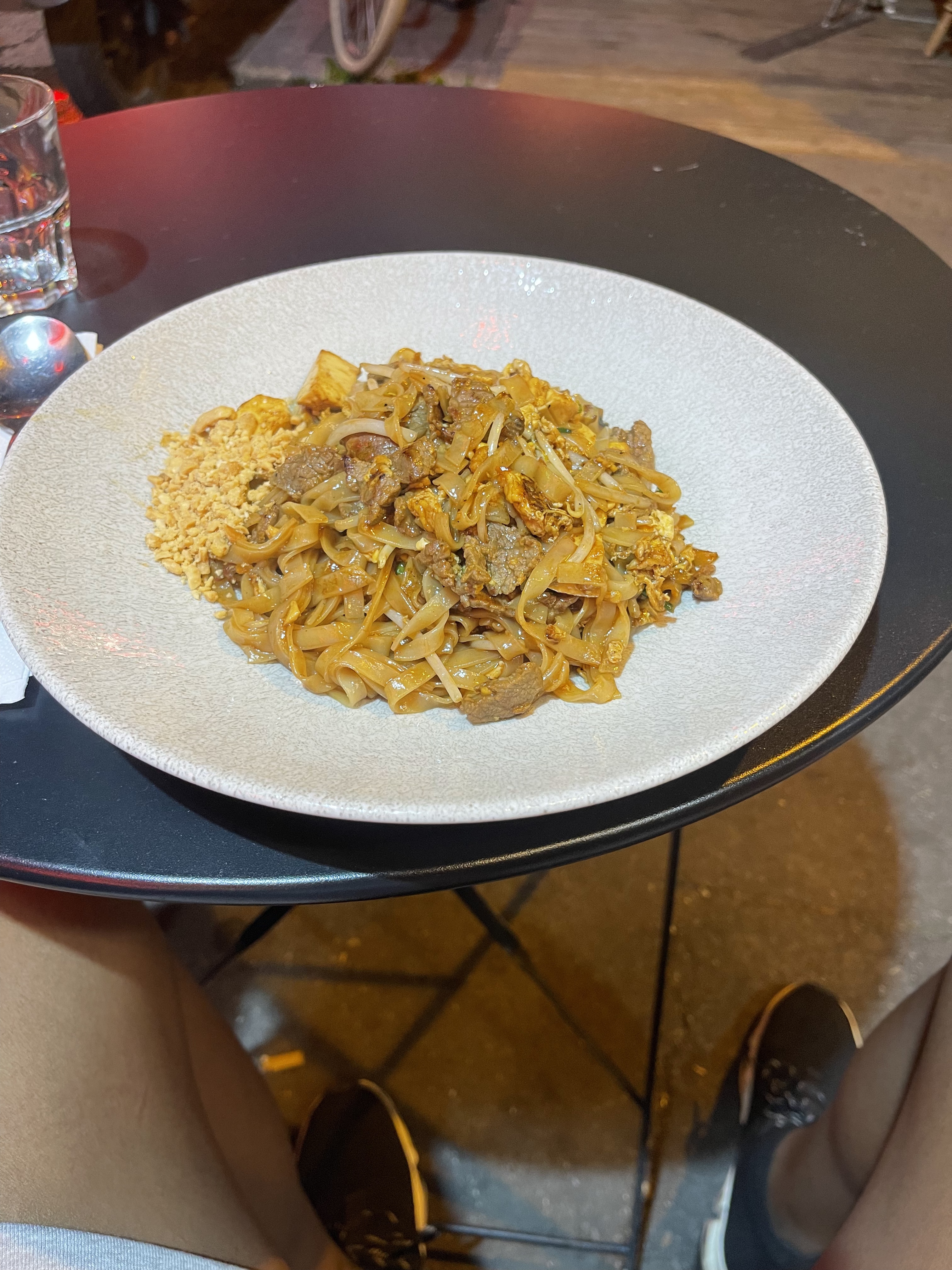 Restaurant qui ne paie pas de mines mais qui propose un pad thaï bœuf de qualité. Mini terrasse, de 2 tables . Agréablement surpris de la qualité des produits. Un des meilleurs padthai que j’ai mangé ! Manque un peu de légumes verts dans l’assiette. Comptez 15€ le plat. J’y retournerai sans hésiter… Portion correcte.